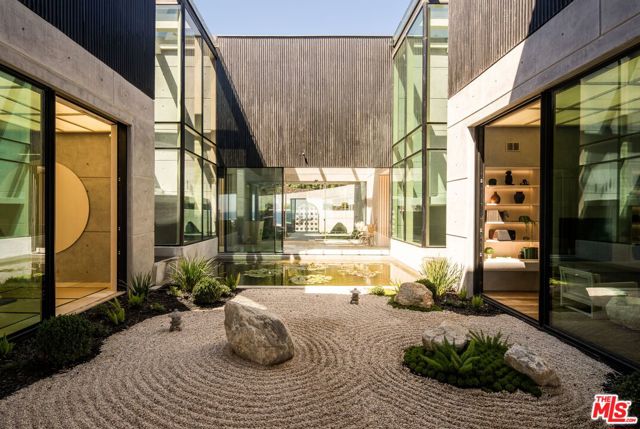 There are homes you live in and there are homes that live forever. Welcome to Simka Malibu - an awe-inspiring creation by "God's Architect" Kris Halliday. Thirty thousand square feet of architectural permanence rising from the bluffs of the Pacific, conceived as both fortress and sanctuary. A location chosen with the foresight of a thousand years thoughtfully positioned, engineered, and constructed with resilience in mind - designed to meet the challenges of fire, earthquake, tsunami, mudslide, and storm erosion. Built with over 7,300 cubic yards of super-reinforced concrete, Simka is a monument to permanence. Every line, every proportion, every material was shaped by one mind, one vision, one creation. The result is not just architecture, but a living work of art. Defined by bold lines of concrete and glass, softened by sculptural landscaping and curated natural stones from around the world, the estate embodies GA's philosophy of Brutality Vitality - where strength is balanced by serenity, and concrete itself is reimagined into a velvet-like presence. Entry unfolds through a secondary gated entry into a tranquil zen courtyard and stone pathway, revealing interiors where floor-to-ceiling glass dissolves the boundary between home and horizon. Simka is a sanctuary - built on Divine Masculinity, created to protect, nurture, and heal. Life here unfolds through sublime experiences: a 176-foot multi-level vein-matched stone pool with swim-up bar, sunken lounge, and dramatic viewing window merging seamlessly with the Pacific horizon. A world-class theater with a 235-inch LED screen, Dolby Atmos sound, and Atelier Italian leather recliners rivals the world's finest private cinemas. A Japanese tea room - a sanctuary within the sanctuary - offers profound quiet. The full commercial kitchen easily supports gourmet cooking for up to 200 guests, complemented by terraces for al fresco dining, shaded loggias, and an outdoor kitchen for endless gatherings. Throughout, water and nature flow: Japanese gardens, waterfalls, meditation courts, koi ponds, and pathways that weave stillness into daily life. Swinging daybeds, a circular fire lounge, and open-air courtyards transform relaxation into ritual. For wellness and longevity, Simka offers a full spa, cold plunge, sauna, treatment rooms, and a state-of-the-art gym with underwater pool windows. A nightclub, private guest suites, and an underground 10-car garage complete the lifestyle offering. The 1,800 sq ft primary suite is a private sanctuary suspended above the waves, with its own hot tubs, fireplace lounge, and spa-inspired bath. Additional suites echo this intimacy, blending organic textures, curated furnishings, and panoramic ocean views. Every detail, down to marble-clad powder rooms designed as art, speaks to permanence and intention. With 10 bedrooms, 20 bathrooms, and seamless indoor-outdoor living, Simka is monumental yet intimate - enduring yet ethereal. Not built for a decade or a generation, but for centuries. Simka Malibu - architecture for eternity.