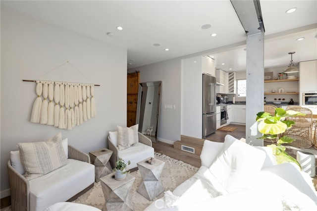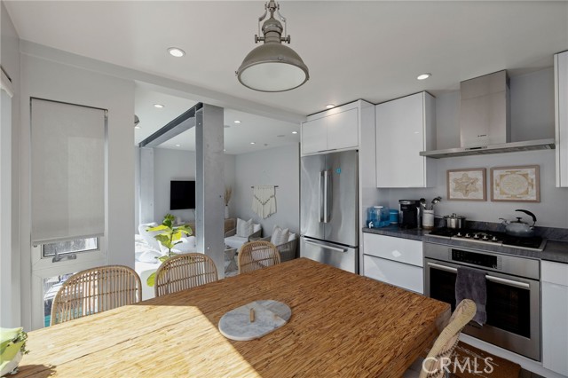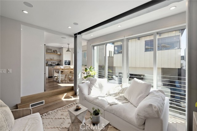 Welcome to a unique opportunity in Manhattan Beach’s coveted Sand Section. This contemporary coastal residence is awash in natural light, with dramatic walls of glass that invite ocean breezes and sunshine into every corner. Inside, wide-plank hardwood floors set a sophisticated tone for the spacious two-bedroom layout. The designer kitchen features white European-style cabinetry, blue-gray granite countertops, and premium Bosch stainless steel appliances—ideal for everyday living and entertaining in style. Retreat to the primary suite with its walk-in closet and ensuite bath, complete with marble countertops. A striking spiral staircase leads to an expansive 681-square-foot south-facing rooftop deck—your sun-drenched oasis above the coast with ocean and pier views, the perfect setting for outdoor dining, relaxation, or sunset gatherings. Additional highlights include sleek electric shades in the main living area, crisp Sonos sound throughout, a six-camera surveillance system with remote monitoring for added peace of mind, a separate laundry room with ample storage, and two individual garages—a major advantage where parking is at a premium in the Sand Section. This exceptional property presents options for full-time residency, a luxurious weekend getaway, or a profitable investment at a fraction of the price typically found in comparable 100-block locations within one of Southern California’s most desirable beach communities.