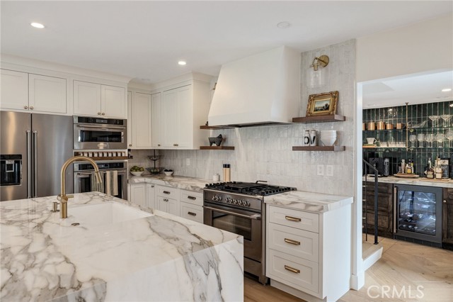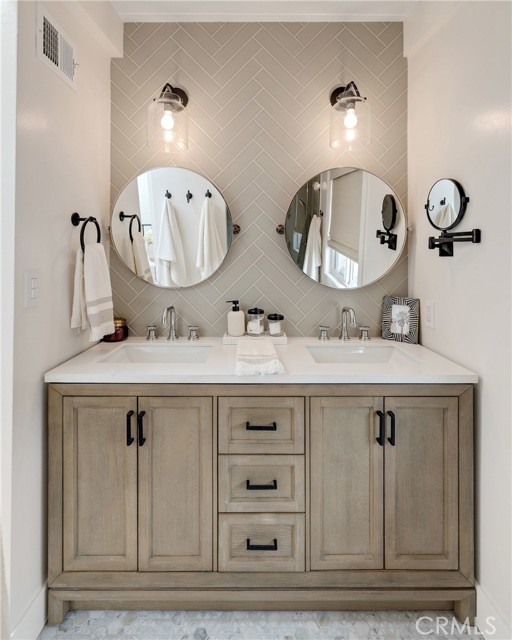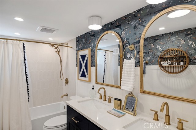 This stunning 5-bedroom, 3-bathroom home in Manhattan Beach offers rare style, space, and comfort on a coveted 9,250 sq. ft. lot. Tucked away on a flat, quiet, tree-lined street with sidewalks, it’s the kind of property you won’t find often, a true unicorn for the area. Recently upgraded with over $900,000 in luxury improvements, this fully turnkey residence showcases both custom and designer-level finishes throughout. Absolutely nothing has been overlooked, move in and enjoy elevated coastal living from day one. The sun-drenched, south-facing backyard and spacious front yard create the perfect backdrop for entertaining, relaxing, and everyday living. Enjoy year-round comfort with both central and wall A/C. Inside, the open concept layout is built for modern living. The chef’s kitchen boasts stainless steel appliances, high end countertops, custom cabinetry, and a waterfall island that anchors the space. A sleek wet bar adds convenience and sophistication, while the living and dining areas flow seamlessly for effortless hosting. The upstairs primary suite is a retreat with vaulted ceilings and a beautifully designed ensuite bathroom. Four additional bedrooms downstairs provide flexibility for family, guests, or a home office. Outside, the private backyard oasis features lush landscaping, a tranquil fountain, and plenty of room for dining, lounging, or play. The backyard is expansive yet highly usable, offering both a flat lower level and a flat upper level, perfect for versatile outdoor living. A mature privacy hedge surrounds the space, creating a serene retreat, while fruit trees and blooming roses add charm and color. This rare combination of size, usability, and natural beauty makes the yard ideal for everything from children’s play to elegant entertaining, with ample potential to add an ADU, pool house, pool, or sport court, the possibilities are endless*. Located near award-winning Mira Costa High School and Pennekamp Elementary, this home offers both charm and convenience, with parks, shopping, dining, and recreation just minutes away.