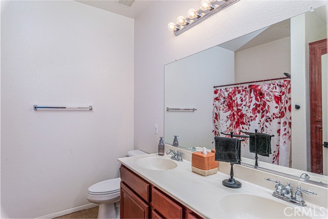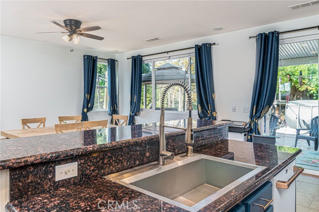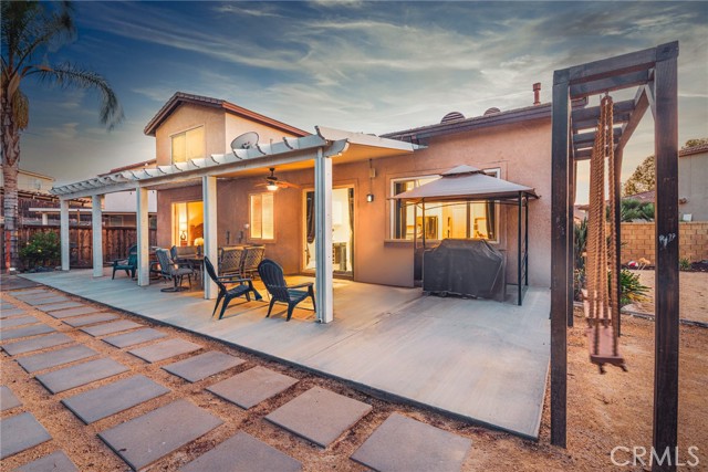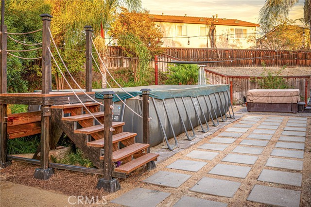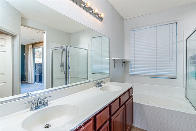 Awesome 4 bed Home with amazing features. Two Master Bedroom suites. MBR & BA downstairs. This home features beautiful floors, window coverings, high ceilings great ambiance throughout. Lovely size living room, dining room. Kitchen has great cabinetry, large island, pantry, dinette area has sliding doors leading to the large private back yard. The backyard is massive and features the pool seen in photos. The family room has a cozy fireplace and is very spacious. Huge loft area with counter and sink amazing potential room is over sized and has the potential for an in law suite or separate suite for guests. Master Bedroom and bathroom downstairs Master bedroom is great size with great walk in closet. Also large Master Bedroom and Bathroom upstairs. . This home has it all. Cul-de-sac location, no neighbors behind, large private backyard. Home is in great condition. This property is in the heart of Menifee located super close to freeway access, shopping and schools.