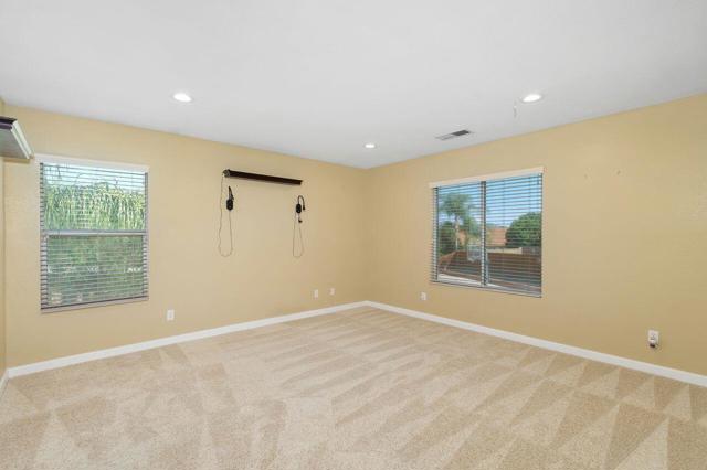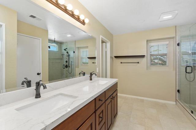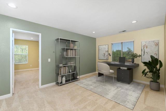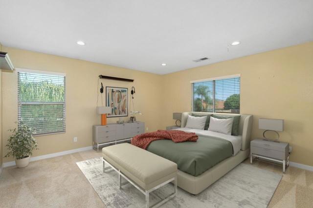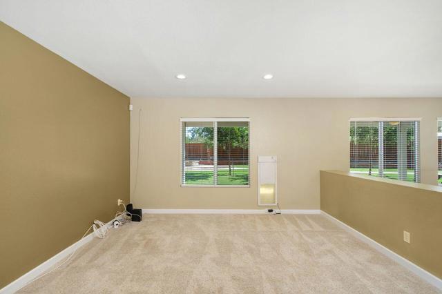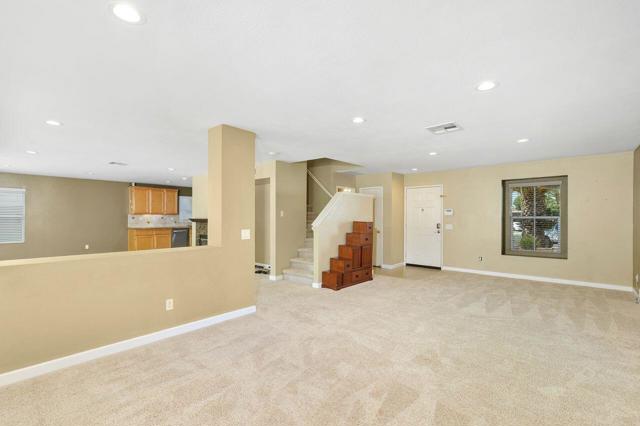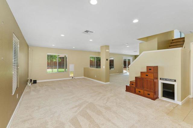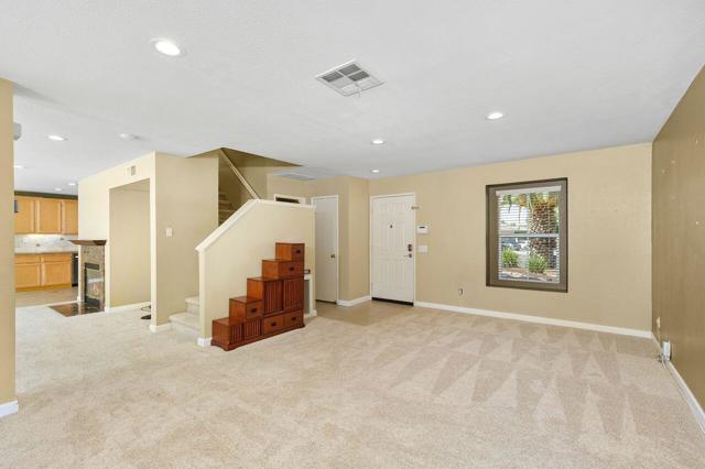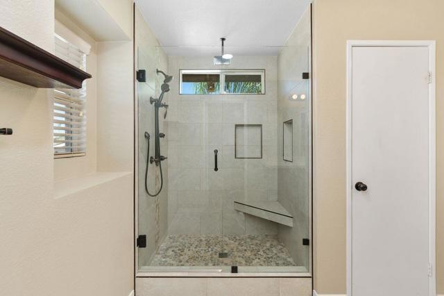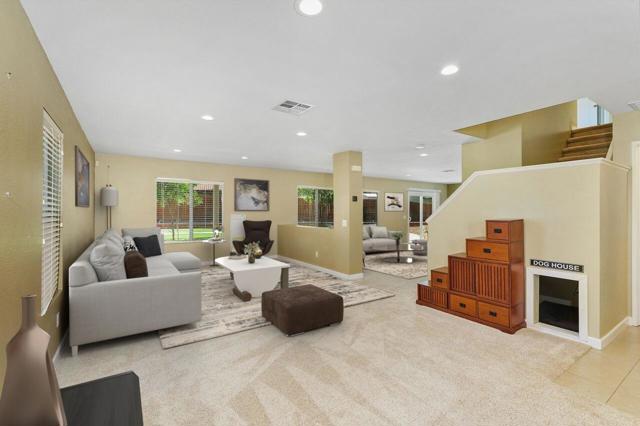 This beautifully upgraded residence offers over 2,100 sq. ft. of living space with 3 bedrooms, 2.5 bathrooms, and a versatile den located just off the primary suite. The primary retreat features a fully renovated spa-like bathroom, creating a private sanctuary. The serene backyard, framed by mature trees and palms, is ideal for both relaxation and entertaining. Additional highlights include OWNED SOLAR, extensive upgrades throughout, and a prime location near shopping, dining, and everyday conveniences. Improvements include:Brand new AC unit replaced 2025.Water heater replaced 2023. Newly-remodeled (2023) master bath with heated tile floor, pocket door. Attic fan. Recessed lighting with dimmers in all common areas and master bedroom. 'Smart' thermostat and sprinkler controls.Built in doggie den. Built in electronic dog door.