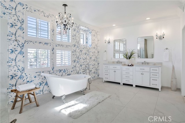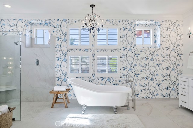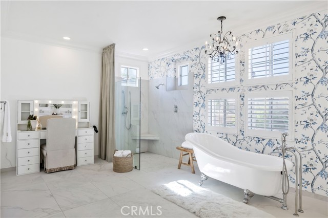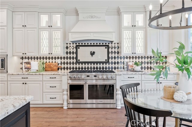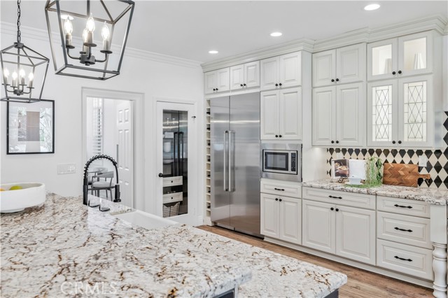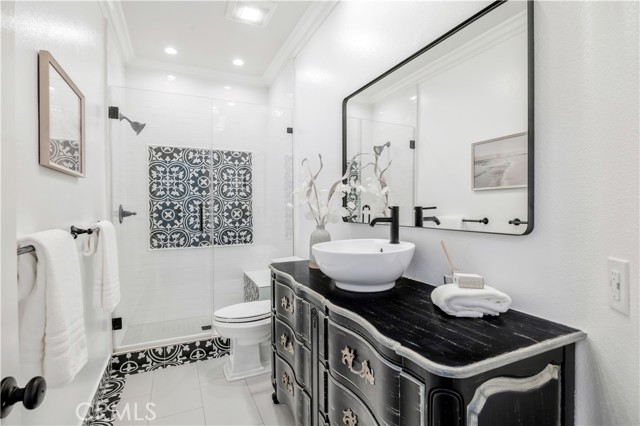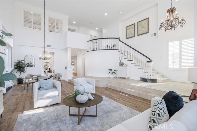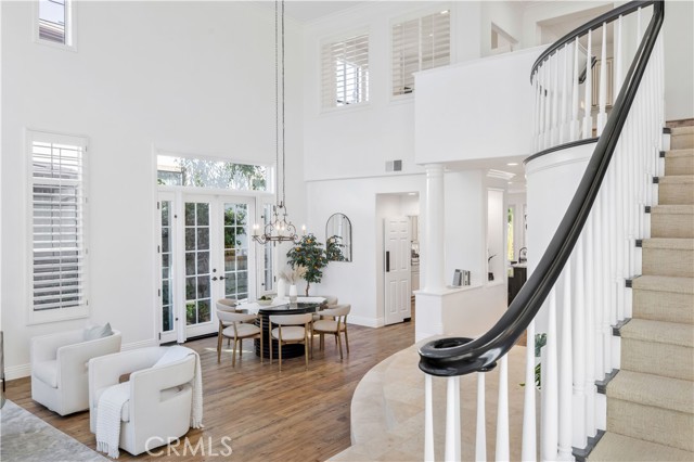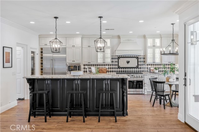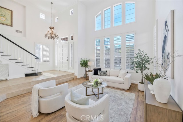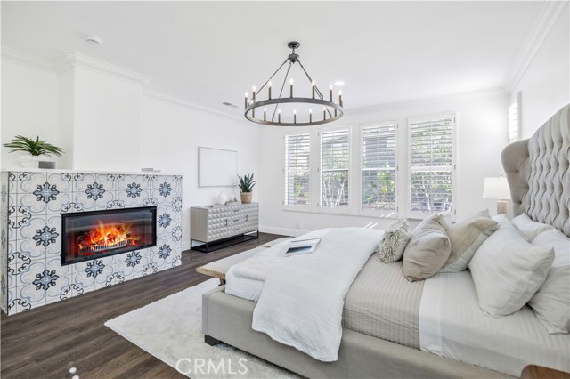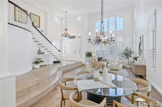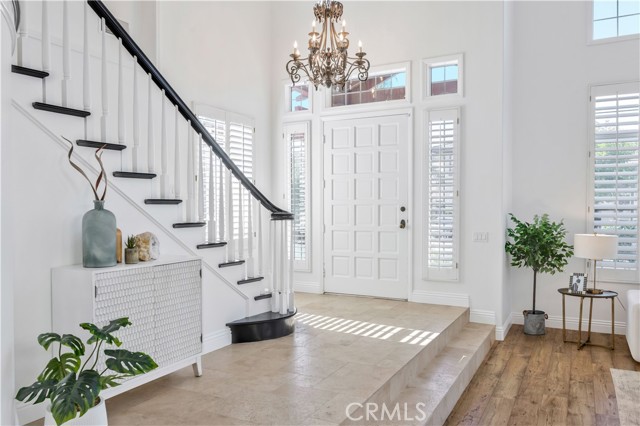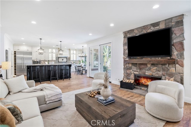 Nestled on a quiet cul-de-sac street within the prestigious GUARD-GATED COMMUNITY of Canyon Crest with NO MELLO-ROOS and LOW HOA, this stunning remodeled home perfectly blends luxury, efficiency, and comfort. This remodeled home residence showcases thoughtful design and superior craftsmanship throughout featuring a FULLY PAID SOLAR SYSTEM WITH BATTERY BACKUP, a spacious epoxy coated THREE-CAR TANDEM GARAGE with EV CHARGER outlet, MyQ wi-fi garage door openers with built in cameras and battery backup, and a large driveway that accommodates up to four cars. Step inside to a grand living and dining area with soaring ceilings, designer finishes, and abundant natural light that highlight the home’s refined style. The gourmet chef’s kitchen is a true showpiece, featuring an 8-burner Thor built-in range with dual ovens, a large built-in refrigerator/freezer, instant hot water tap, high-end stainless steel appliances, and a large walk-in pantry. The breakfast nook opens seamlessly to the inviting family room with a beautiful stone fireplace—perfect for everyday living and entertaining. Upstairs, the luxurious primary suite offers a private retreat with its own fireplace, a spacious sitting area, and a massive walk-in closet. The oversized spa-inspired primary bathroom features a freestanding soaking tub, a large walk-in shower, a separate makeup vanity and stunning designer finishes. Three additional bedrooms complete the upper level, including one currently used as an office with built-ins that can easily be converted into a bedroom. Step outside to a beautifully landscaped backyard featuring a gorgeous pergola, outdoor fireplace, interlocking stone patio, fruit trees and plenty of privacy—ideal for gatherings or quiet relaxation. Additional highlights include a water softener, plantation shutters, crown molding, three fireplaces, and remodeled bathrooms. Residents enjoy access to world-class amenities including pools, tennis courts, a fitness center, clubhouse, playground, and Lake Mission Viejo privileges for boating, swimming, fireworks and summer concerts. This exceptional home offers the perfect combination of elegance, energy efficiency, and California living at its finest all nestled on a quiet cul-de-sac street in a guard gated community across from Lake Mission Viejo.
