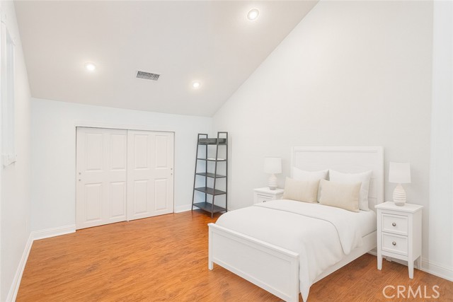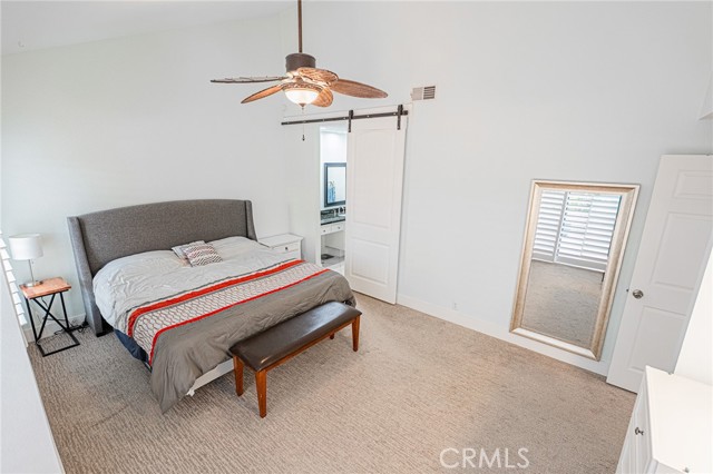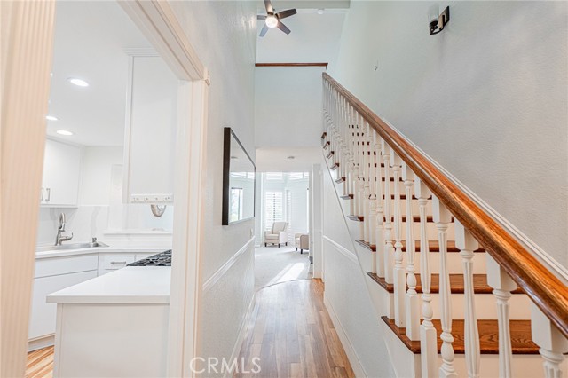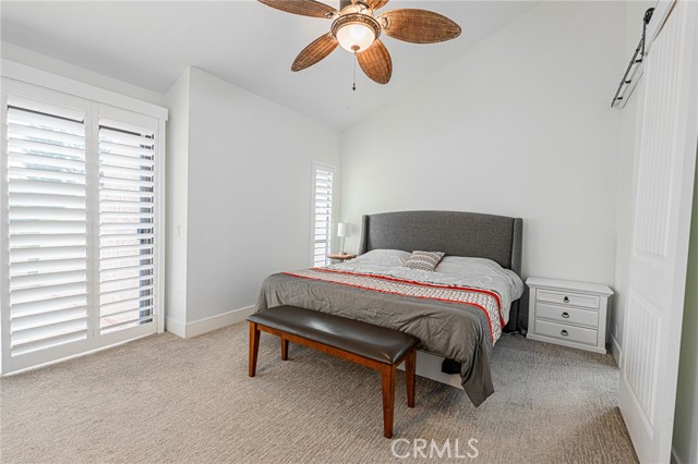 Finisterra on the Green, an elegant gated community situated adjacent to the Lake Mission Viejo Country Club. This beautifully maintained townhouse offers 2 bedrooms, 2 bathrooms, the spacious upstairs loft that has been thoughtfully converted into a third bedroom. The kitchen is designed with both style and function in mind, showcasing quartz countertops, recessed lighting, abundant cabinetry, plenty of storage for those kitchen essentials. The layout flows seamlessly into a formal dining area and an expansive living room with impressive high ceilings. A striking fireplace serves as the focal point, while surrounding windows fill the home with natural light and custom wood shutters. Sliding glass doors open to a private balcony, ideal for relaxing or entertaining. The master bedroom offers vaulted ceilings, and direct balcony access. Its ensuite bathroom features quartz countertops, a walk-in-shower, and a custom built closet organizer. The secondary bedroom, located on the opposite side of the home, provides comfort and privacy for guests. The hall bathroom includes a tub-shower combination and granite countertops. Convenient washer and dryer hookups are discreetly located in a hallway closet with additional storage cabinets. The upper level loft, currently configured as a third bedroom, provides flexible space that can easily function as a home office, gym, or creative studio, complete with a large closet. Residents of Finisterra on the Green enjoy exclusive access to Lake Mission Viejo, as well as community amenities including a pool, spa, recreation area just steps from the property. This is an exceptional opportunity to own a home in one of Mission Viejo’s most desirable neighborhoods. Additional features include a detached single-car garage and an assigned covered carport and a new HVAC system, ensuring enhanced comfort and energy efficiency throughout the home.