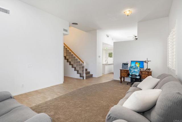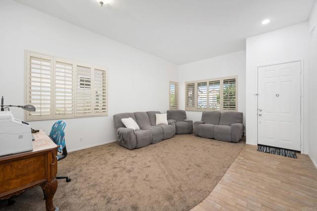 Introducing a rare two-story home that REALLY lives like a single story with a bonus upstairs loft! Located in a serene Murrieta neighborhood that's close to shopping, top rated schools, and freeways, so you won't need to go far for anything. Curb appeal welcomes you with fresh exterior paint, mature citrus trees in front, and a shaded front porch. Enter into a spacious living room, separate from the family room with a fireplace, both featuring vaulted ceilings. The oversized kitchen is central to the home and generous with: the island, counter space, storage, and even a pantry closet. A formal dining room with shutters and detailed wood trim adds a touch of elegance looking out onto the sparkling salt water pool. A half bath completes the main living areas, making it easy to host. Down the hall are all 4 bedrooms, including a primary suite with ensuite bath and walk-in closet for privacy and comfort. The three secondary bedrooms share a hall bath with a split design, allowing multiple users at once. The laundry room leads to a roomy 3-car garage with an EV charger. Upstairs you'll find the loft is a wonderful space for whatever you need, currently enjoyed as a home theater. The pool, blooming garden, and a partially covered patio make the back yard a rejuvenating place from sunrise to sunset. Fully paid solar keeps electric costs low. Other home highlights include fresh paint inside and out, new carpet, a high efficiency HVAC, a whole house fan, and wired-in ethernet. Don't miss out!
