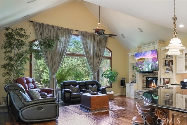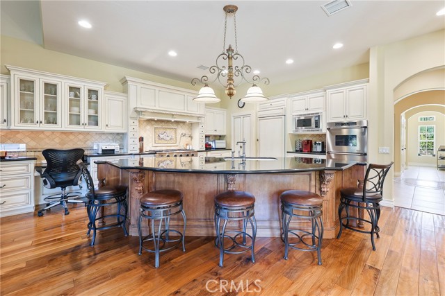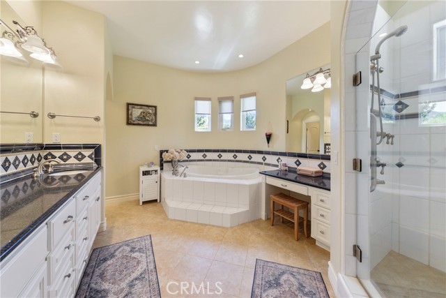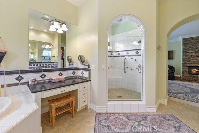 Tucked away on a serene cul-de-sac, this single-story French Provençal estate blends timeless architecture with modern luxury. Rare offering of elegance and lifestyle in the prestigious Bear Creek Community. Framed by graceful oak trees and sweeping hillside views, the home offers 4 bedrooms, 4.5 bathrooms, and exquisite living spaces designed for both comfort and elegance. Inside, the heart of the home is a chef’s kitchen featuring a center island, 6-burner range with griddle, double ovens, granite counters, and a walk-in pantry. The adjoining family room dazzles with a stone fireplace and a picture window that captures the beauty of the natural landscape. The primary suite is a private retreat with its own fireplace, French doors leading to a secluded jacuzzi, and a spa-inspired bath with soaking tub, dual sinks, vanity, walk-in shower, and expansive closet. Each additional bedroom enjoys its own en-suite bath, with two opening onto a charming courtyard. Outdoors, private patios and a welcoming front courtyard invite relaxation and entertaining, while a resort-style spa with stone and waterfall features completes the setting. An oversized 3-car plus golf cart garage with epoxy floors, along with a fully paid solar system, ensure convenience and efficiency.
