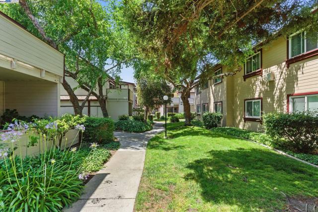 Welcome to this beautifully maintained 2-bedroom, 2-bathroom corner unit offering 840 sqft living space. With double-pane windows on two sides, this home is filled with natural light and provides excellent insulation. This home features upgraded laminate flooring throughout, complemented by built-in cabinets that offer both style and smart storage. The kitchen features a new refrigerator, and the in-unit laundry comes equipped with a new washer/dryer and a new water heater tank all typical of a single-family home setup, bringing both convenience and efficiency. Step out onto the private balcony, perfect for morning coffee or relaxing evenings. This unit also includes a spacious open layout that blends living and dining areas effortlessly. Located next to a community and kids' park, and just across from City Hall, the public library, and police station, this condo offers unbeatable access to essential amenities. Enjoy quick freeway access and proximity to the Dumbarton Bridge, minutes away from the new Newark Costco and popular Fremont restaurants, blending suburban comfort with urban convenience. Don't miss this rare opportunity to own a move-in ready home in a desirable, commuter-friendly location!