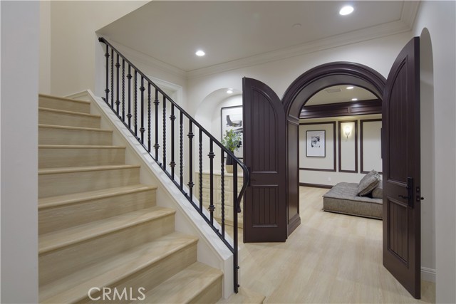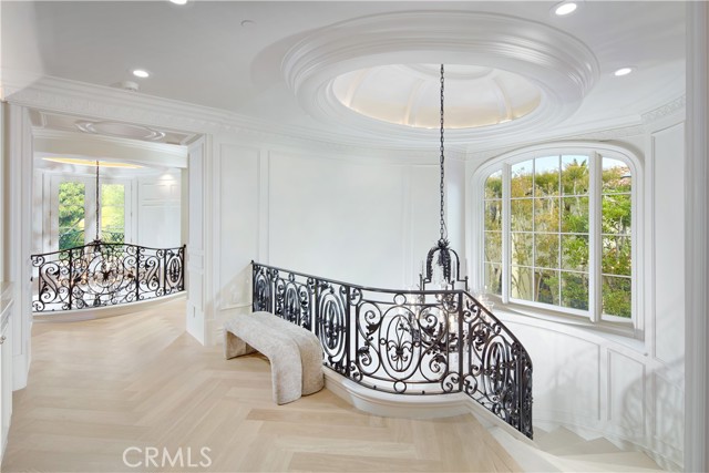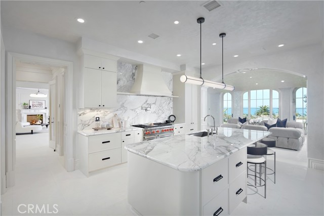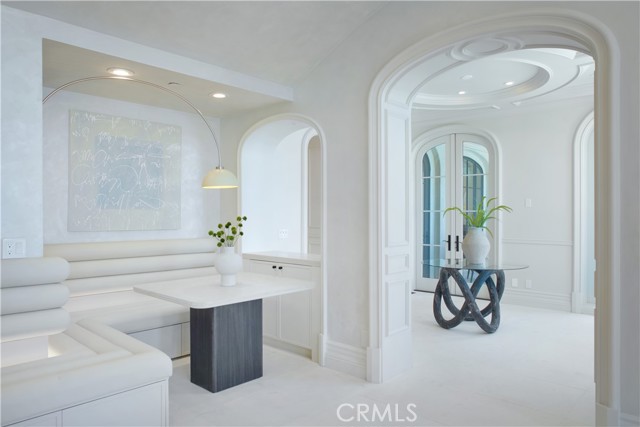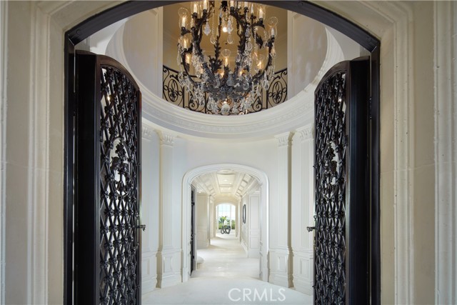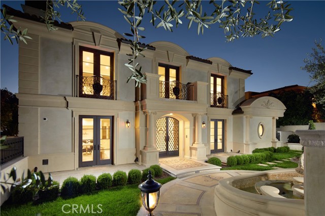 Exquisitely reimagined in 2025, this French palatial manor pairs timeless European elegance with fresh, modern sophistication. Set on a 13,155± sq. ft. parcel in the prestigious guard-gated enclave of Pelican Crest, the 8,367± sq. ft. residence commands sweeping views of the Pacific Ocean, Catalina Island, Newport Harbor, and the famed Pelican Hill Golf Course. Behind its stately façade, every detail has been elevated with the finest materials and craftsmanship: natural limestone and white oak herringbone floors, hand-brushed Venetian plaster, Moka Creme honed stone in all wet areas, and bespoke solid brass hardware in oil-rubbed bronze or polished nickel. The two-story foyer with antique chandelier leads to a grand staircase, gracious formal living and dining rooms with custom fireplaces, a richly appointed wood-paneled library, and a sun-filled family room with fireplace that adjoins the gourmet kitchen. A culinary showpiece, the kitchen featuring Calacatta Vagli marble surfaces, custom cabinetry, dual refrigerators, professional-grade appliance, and a built-in upholstered ocean-view banquette with custom breakfast table. The opulent primary suite offers a fireplace, spa-inspired bath with an ocean-view soaking tub, architectural glass-block accents for natural light, and a custom-designed closet. Additional amenities include five secondary suites, a tiered theater room, activity/fitness spaces, sauna, steam room, and a subterranean 7-car garage. Additional upgrades include a new roof, new HVAC system, all new plumbing connectors and two new water heaters. Outdoors, new stucco and roofing frame lush entertaining areas with a saltwater pool/spa and BBQ/kitchen with natural stone countertops — all set against a backdrop of endless coastal beauty. This is Newport Coast living at its most refined — where architectural artistry meets modern luxury in a rare, view-rich estate.