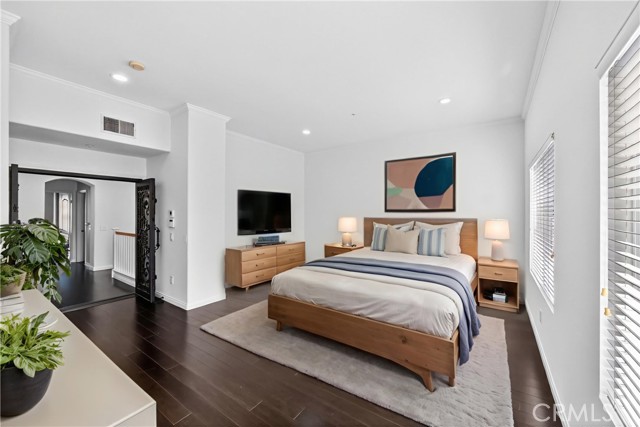 Studio City home with an excellent floor plan featuring 3 beds & 3 baths plus a bonus room, perfect for office, studio or "almost" downstairs 4th bedroom. Enormous master suite with massive walk in closet. Living room with 18’ cathedral ceiling. Large Family room with fireplace adjacent to updated gourmet kitchen with center island and charming breakfast nook.Open Dining room, Laundry room. Open and bright floor plan with lots of natural light. Hardwood and tiled floors throughout. Private backyard with covered patio, pavers and fruit trees. Interior completely repainted. Wonderfully quiet and private cul-de-sac, located near Universal Studios, Toluca Lake and Weddington Park.