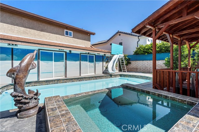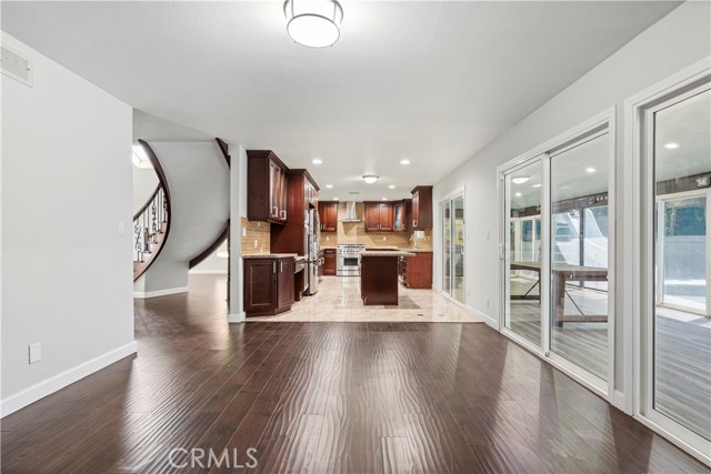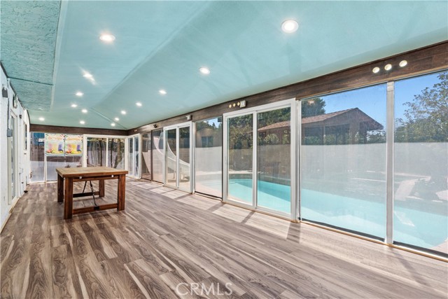 Welcome to the Prestigious Sherwood Forest Neighborhood of Northridge! This spacious and well-maintained 2-story pool home offers the perfect blend of elegance, comfort, and functionality, featuring 4 bedrooms plus a den and 3 bathrooms, offering flexible living space ideal for families or entertainers. Step through the front door into a grand living room and formal dining area with vaulted ceilings, skylights, and a beautiful curved staircase. The open-concept kitchen includes a granite island and an adjacent dining area, seamlessly connecting to the cozy family room with a romantic fireplace and wet bar—perfect for gatherings and relaxation. A bedroom and full bath downstairs provide an ideal setup for guests, in-laws, or a private home office. Upstairs, the expansive master suite features another skylight, a walk-in closet, and a private en-suite bathroom. Direct access to a 2-car garage via the downstairs laundry room, enclosed sunroom patio. A lush backyard oasis with an in-ground pool and spa, a large lawn, and tropical fruit trees—perfect for summer parties and outdoor living Less than a mile from CSUN, all major retailers, a supermarket, Costco, Fashion Mall in Northridge, and dining are nearby. This home combines tranquil suburban living with urban convenience.