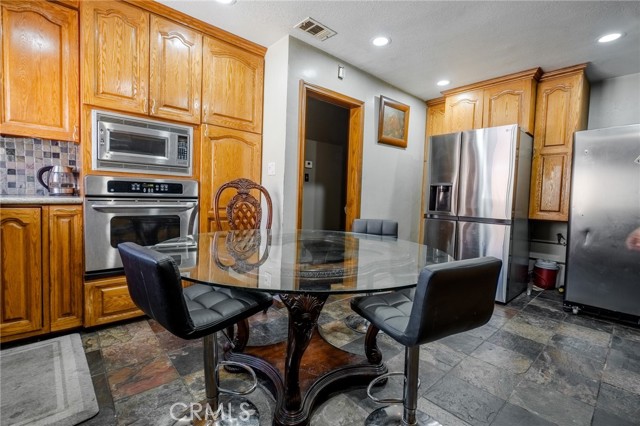 Beautiful Move-In Ready Home. This stunning, turnkey property offers 3 spacious bedrooms and 2 full bathrooms. (one bathroom with ceiling skylight) Enjoy a large family room with a cozy wood-burning fireplace and an adjoining dining area—perfect for entertaining. The updated kitchen features recessed lighting, stainless steel appliances, cabinets with pull-out drawers, granite countertops, a slate tile floor, Laminate floor, water softener, and optional convenient in-kitchen laundry area. Each bedroom includes a ceiling fan for comfort, and the home is equipped with central heating, air conditioning. Step outside to a low-maintenance backyard with a covered patio, New automatic sprinkler system and timer, Copper and PVC plumbing, Ten energy-saving Solar Panels, two storages stay with the property. Additional features include a two-car garage, and much more.