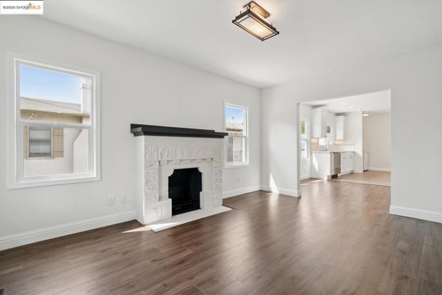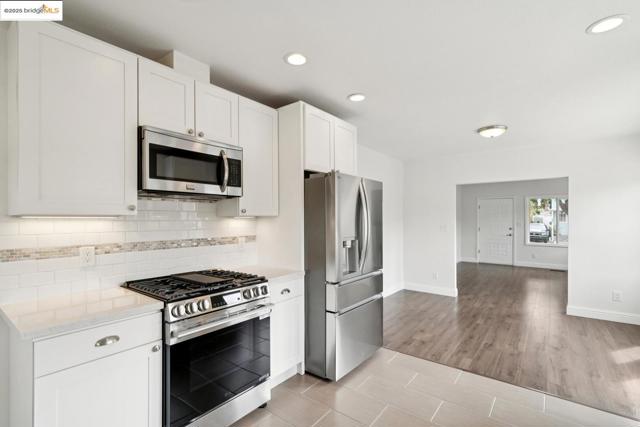 A classic Oakland Craftsman refreshed for modern living. Recent updates include fresh interior and exterior paint, a newly painted fireplace that anchors the living area, and a light fixture that adds character and warmth. The kitchen features brand-new, never-used appliances, a Kraus faucet, and solid shaker doors with updated hardware for a cohesive finish. The bathroom includes a new vanity, framed mirror, and updated fixtures. Outside, a new cedar fence encloses the backyard, where a freshly painted gazebo and mature fruit trees create a serene backyard setting. The wide garage and long driveway provide generous storage and parking options. Additional improvements include a dedicated circuit for EV charging, newer furnace, A/C installation, sewer lateral compliant, an outdoor garden sink, and a quarter bath addition near the gazebo - bringing together comfort, style, and thoughtful function throughout.