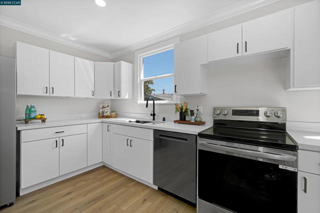 Welcome to this beautifully remodeled 2-bedroom, 1-bath home with a spacious 2-car garage, perfectly blending comfort and style in a convenient Oakland location. Step inside to discover a bright and inviting floor plan featuring refinished hardwood floors, luxury vinyl accents, and fresh interior and exterior paint throughout. The updated kitchen shines with new appliances, sleek finishes, and modern touches, while the bathroom has been thoughtfully renovated for a fresh, contemporary feel. Out back, enjoy a private yard filled with fruit-bearing trees—including fig, olive, and lemon—creating your own little oasis. Situated near schools, restaurants, and local amenities, this home offers the perfect mix of everyday convenience and neighborhood charm.