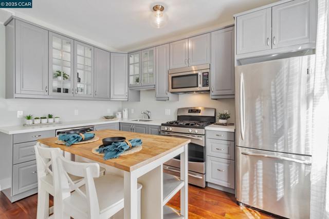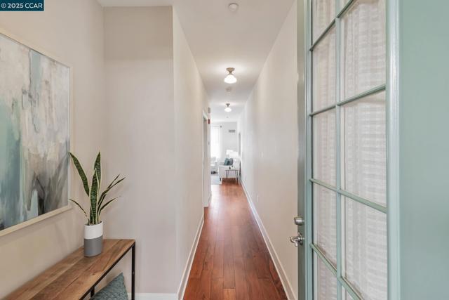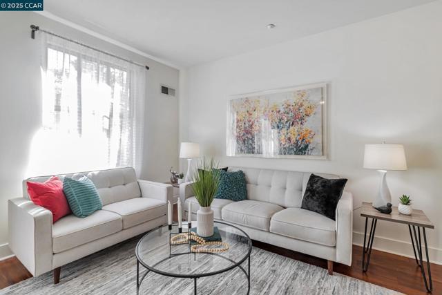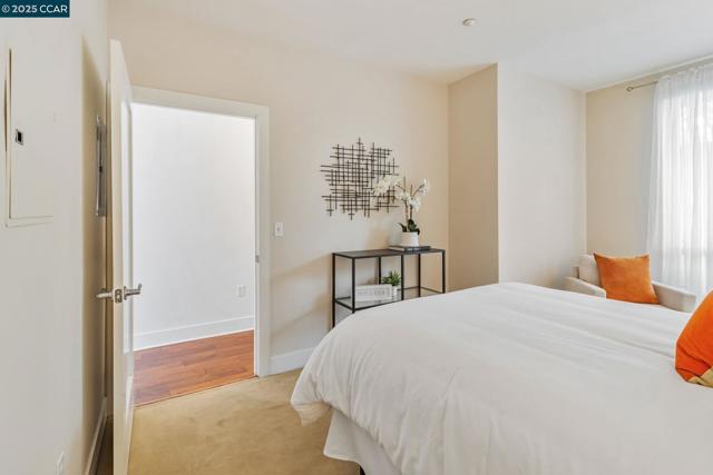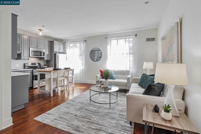 Modern Comfort in the Heart of Piedmont Avenue Welcome to Il Piemonte — a boutique 26-unit community wrapped around a serene, landscaped courtyard. This stylish one-bedroom condo combines contemporary design with unbeatable location. Step into a spacious great room with soaring ceilings, oversized windows that flood the space with natural light, and wide plank flooring throughout. The expanded, modern kitchen features quartz countertops, stainless steel appliances, and elegant glass-front cabinets — perfect for cooking at home or hosting friends. The quiet bedroom overlooks the courtyard and includes a generous walk-in closet. A secured, gated garage spot is included, with EV charging available for residents. Elevator access. Enjoy sunsets or weekend hangouts on the shared rooftop deck. Just outside your door, discover all the charm of Piedmont Avenue — from neighborhood favorites like Fentons and Piedmont Market to everyday essentials like Safeway and Starbucks, all within a short stroll. Whether you're commuting to UC Berkeley or Kaiser Oakland, this location makes it easy to get where you need to be — quickly and conveniently.