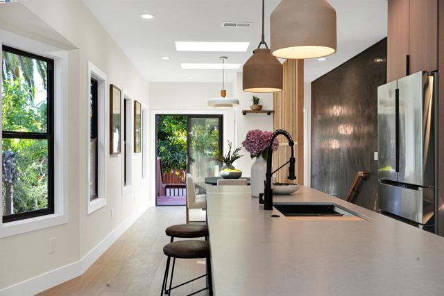 Welcome to this stunningly reimagined home in the heart of Rockridge, where timeless charm meets modern sophistication. Recently upgraded with impeccable attention to detail, this residence offers an open and airy floor plan filled with natural light, high-end finishes, and designer touches throughout. The gourmet kitchen is a true showstopper—featuring custom cabinetry, sleek quartz countertops, and top-of-the-line stainless steel appliances—perfect for both everyday living and elegant entertaining. Thoughtfully redesigned bathrooms boast spa-like amenities, including walk-in showers, luxurious tile work, micro cement walls, and premium fixtures. Beautiful whiteout engineered hardwood floors, updated systems, and stylish accents at every turn, this home delivers both comfort and functionality. Step outside to a landscaped yard ideal for al fresco dining or quiet relaxation. Located in one of Oakland’s most desirable neighborhoods, you’re just moments away from College Avenue’s vibrant shops, cafes, BART, and top-rated schools. A rare blend of classic Rockridge character and contemporary luxury—this turnkey home is not to be missed.