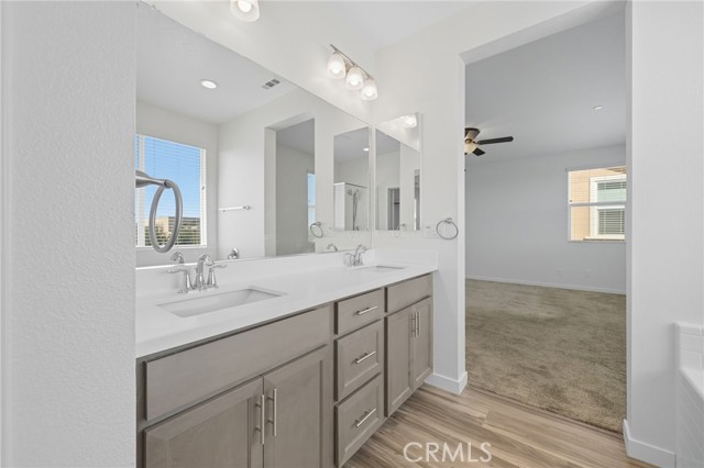 Stunning Turnkey Home in Prestigious Park Place, Ontario Ranch! Photos don’t even come close to capturing how incredible this home really is! Built in 2018 and meticulously maintained, with new paint throughout the inside, this immaculate 4-bedroom, 3-bath beauty offers 2,396 sq. ft. of modern luxury in one of the most desirable master-planned communities in Ontario Ranch. The flexible floor plan includes a downstairs bedroom and full bath—perfect for guests, in-laws, or a private home office. Step inside and you’ll fall in love with the bright, open-concept design, upgraded flooring, and designer finishes throughout. The chef’s kitchen is a true showpiece, complete with ENERGY STAR® stainless steel appliances, an oversized island, abundant cabinetry, and gorgeous countertops—ideal for entertaining and everyday living. Upstairs, the luxurious primary suite is a retreat of its own, featuring a massive walk-in closet and spa-inspired bath with a soaking tub, separate walk-in shower, and dual vanities. Two more spacious bedrooms, a full bath, an oversized loft for movie nights or a game room, and a convenient laundry room complete the second level. Enjoy energy efficiency and low utility costs with leased solar panels, a tankless water heater, and an upgraded garage. Outside, your private backyard oasis awaits with a covered patio, turf, and low-maintenance landscaping—perfect for barbecues, gatherings, or simply relaxing under the stars. Resort-style living is right outside your door with a low HOA that gives you access to a sparkling pool & spa, state-of-the-art clubhouse, billiard room, fitness center, sauna, parks, playground, and outdoor cooking areas. Conveniently located near top-rated schools, shopping, dining, and major freeways—this is the one you’ve been waiting for! Don’t wait—homes like this sell FAST! Schedule your private showing today and fall in love in person.