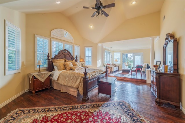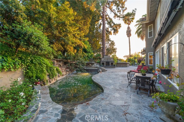 Welcome to 435 S Estate Drive, a spectacular estate home located in the prestigious Hewes Park Estates—a private, gated enclave of luxury homes in East Orange. This elegant semi-custom residence is perfectly situated on a large, beautifully landscaped lot and offers the ultimate in privacy, comfort, and California indoor-outdoor living.Grand entry with soaring ceilings and abundant natural light spectacular home in the small gated enclave of Hewes Park Estates. Main house with 4,062 sq ft and completely separate 760 sq ft guest house with garage and upgrades including wood floors, granite kitchenette and private outdoor garden area. Nestled in a wooded setting surrounded with mature landscaping including a breathtaking and incredibly rare century old Moreton Bay Fig tree. wrought iron & crystal chandeliers, custom window coverings, soaring ceilings, Chef's kitchen features Viking range, subzero refrigerator, dual dishwashers, and large granite counter top center island, double ovens & walk-in pantry spacious family room with fireplace, wet bar, and views of the resort-style backyard elegant formal living and dining rooms with designer touchstone.Home office ,Expansive primary suite with sitting area, spa-inspired bathroom & walk-in closet ,Outdoor Oasis Custom pool & spa with waterfall features Built-in BBQ island and covered patio – perfect for entertaining Professionally landscaped with mature trees and lush greenery Peaceful, private setting with mountain views