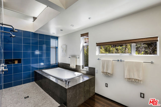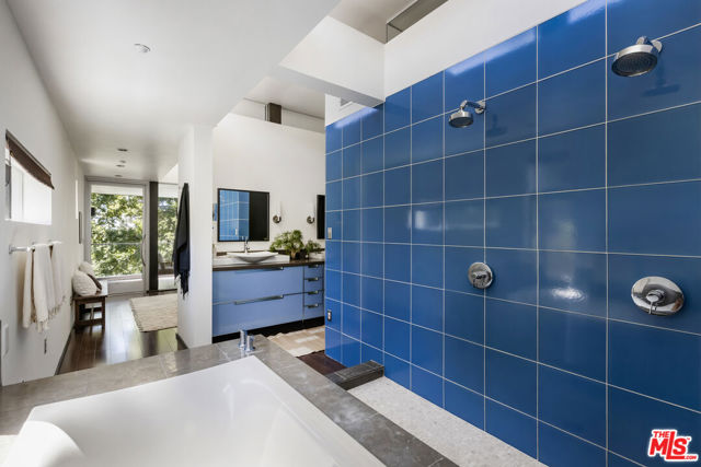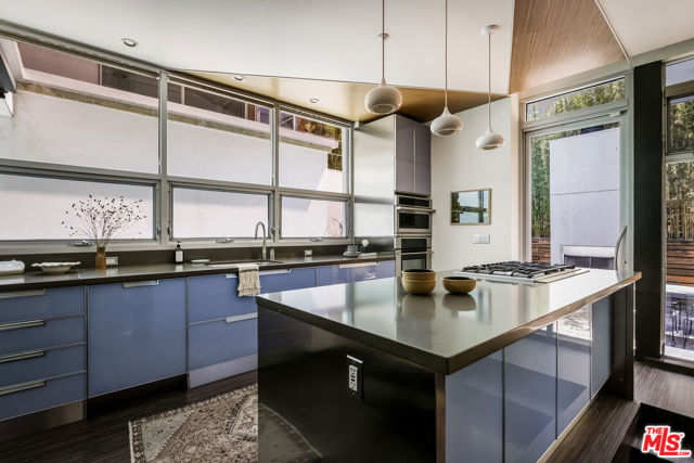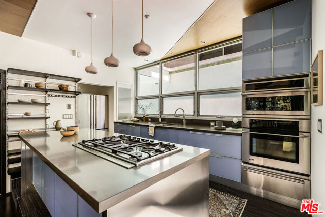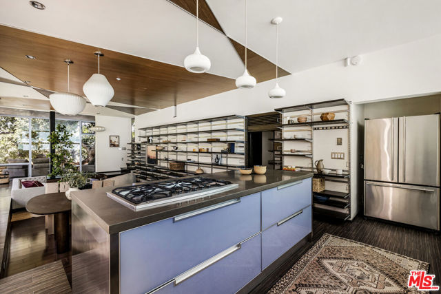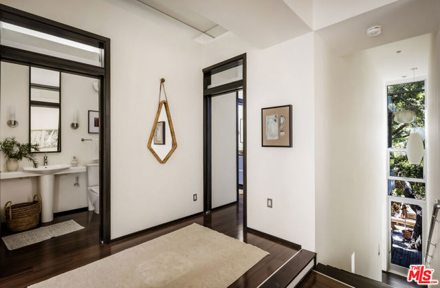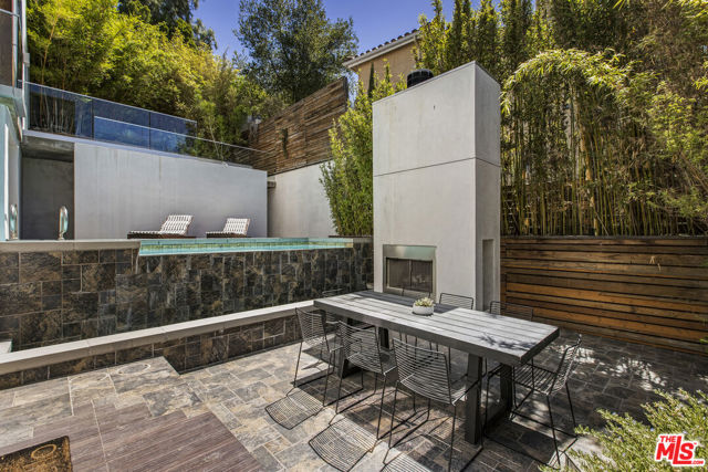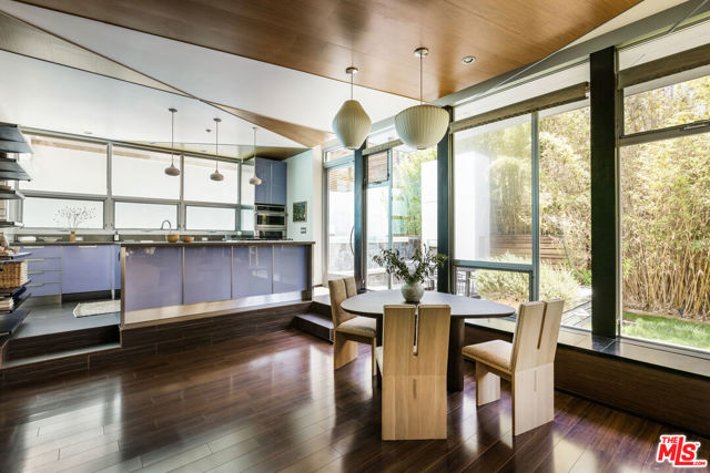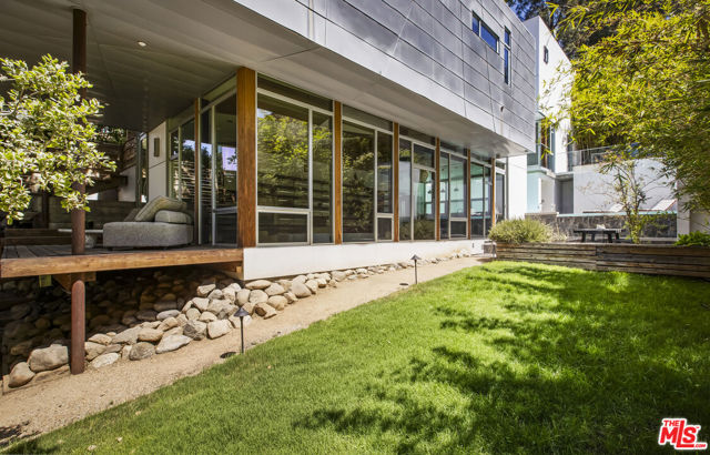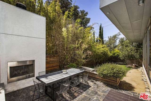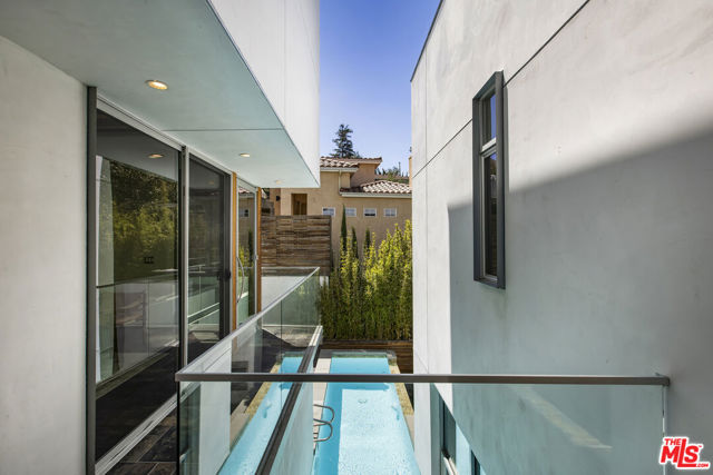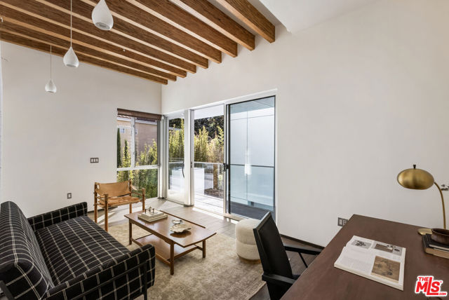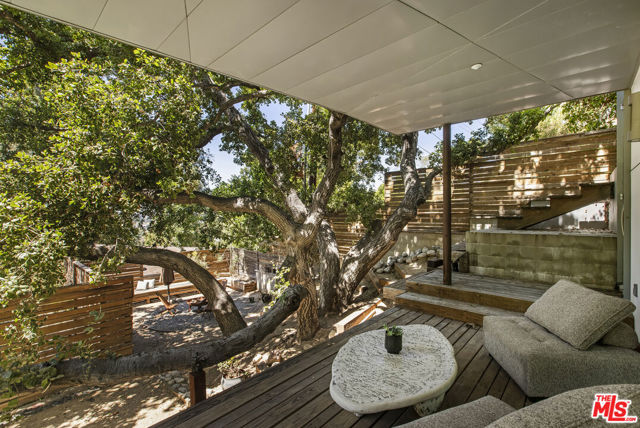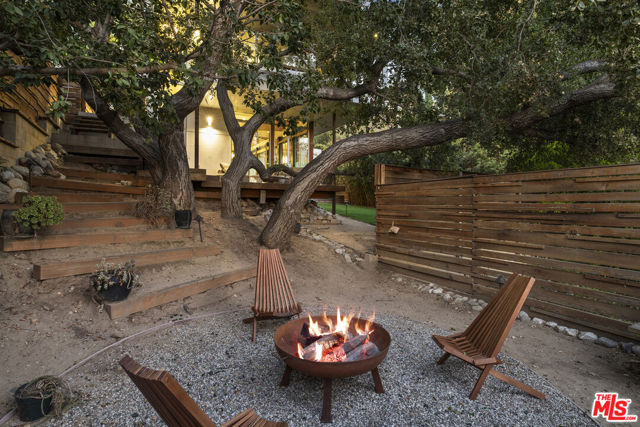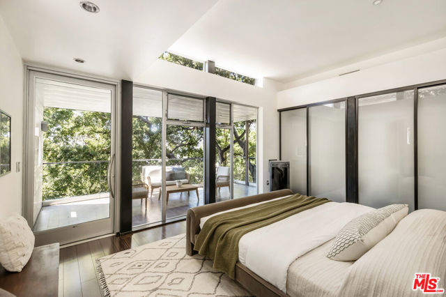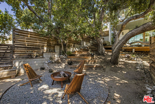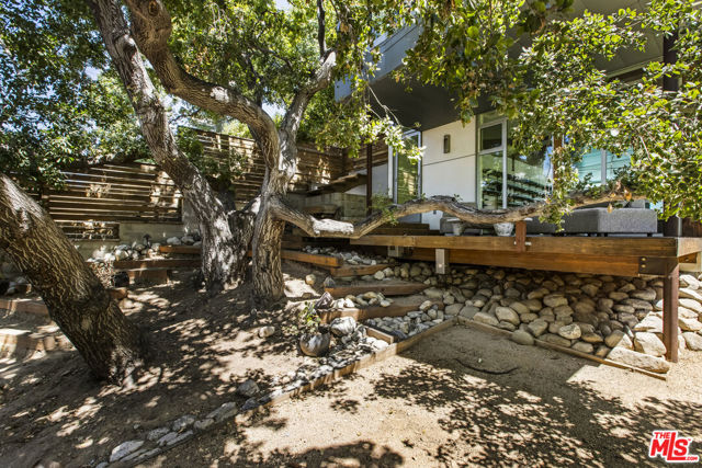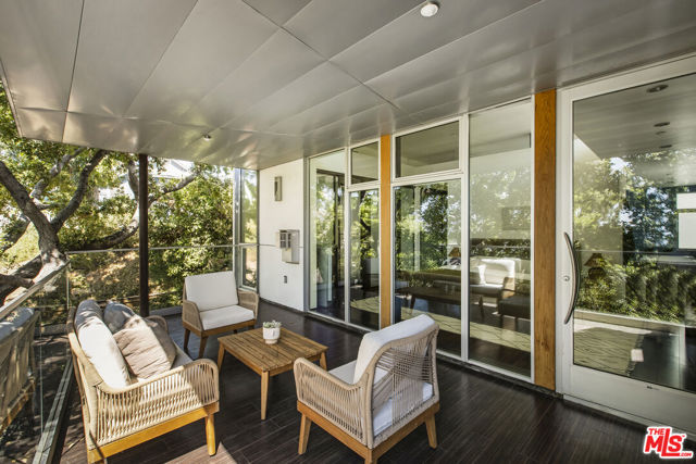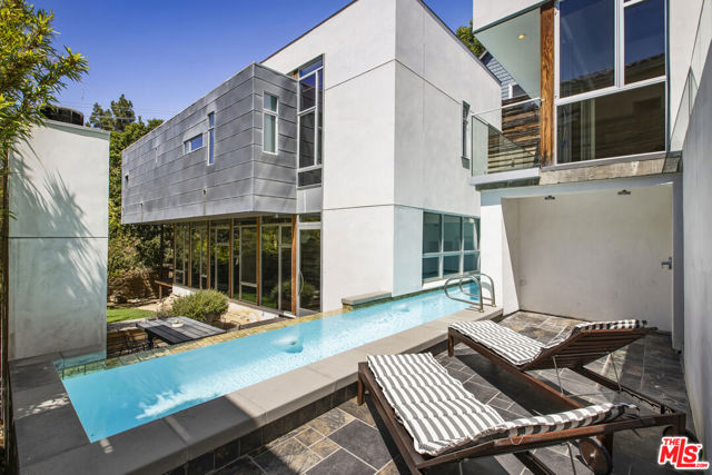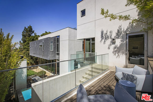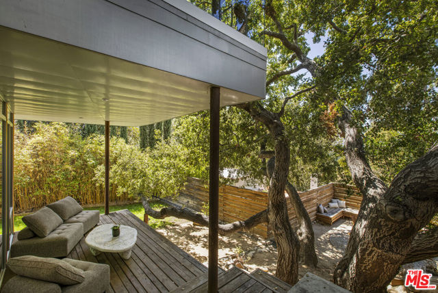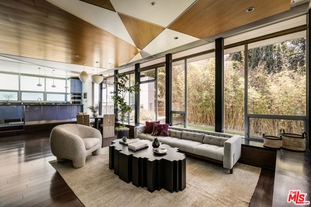 Tucked into the trees on a quiet street, this home is a striking architectural that balances bold modern design with natural serenity. Walls of glass and custom wood-and-metal ceilings define the dramatic main living spaces, where natural light pours in and every room flows seamlessly outdoors. The chef's kitchen opens to the living and dining areas, with sightlines to bamboo groves and lush greenery. Step outside to a private resort setting: a lap pool framed by sleek architecture, a fireplace terrace for al fresco dining, an oak-shaded lounge, and multiple decks designed for gathering or quiet retreat. The grounds unfold in layers, revealing a detached one-bedroom suite perfect for guests, a creative studio, or private office. Upstairs, airy bedrooms with exposed beams and balconies offer treetop views and a sense of retreat. Every detail has been considered, from the sculptural staircase to the clean lines of steel, glass, and warm wood accents. This home is both a sanctuary and a statement where architecture, landscape, and lifestyle converge. Every element is designed to evoke the calm of a boutique hotel while offering the intimacy of home. At once sculptural and livable, private yet connected, this is modern living at its most inspired.