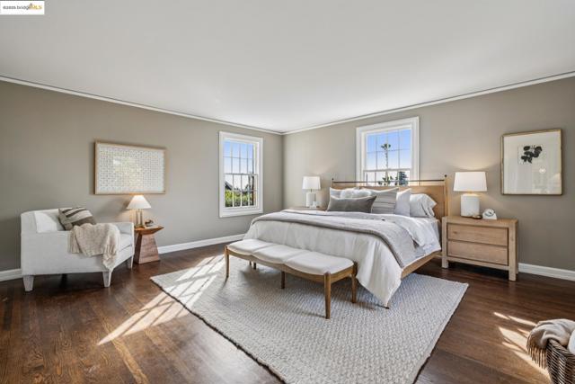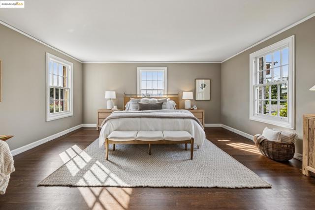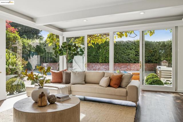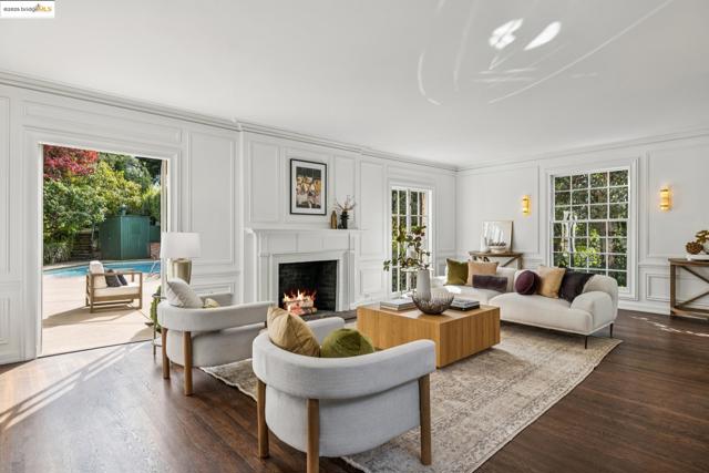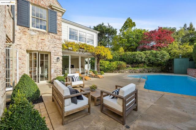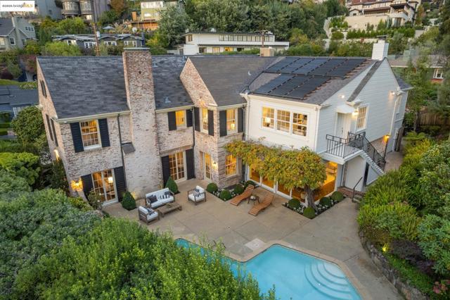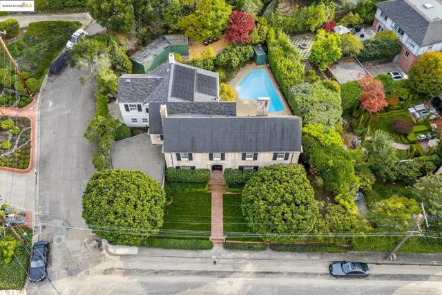 Experience timeless elegance in this stately Georgian residence, where classic architecture meets modern livability. Beautifully sited on a prominent corner lot of nearly 1/3 acre, 64 Sharon Ave offers graceful proportions, light-filled interiors, and an effortless floor plan designed for today’s lifestyle. At the heart of the home, the renovated kitchen and adjoining breakfast and family rooms are perfect for gathering w/ family and friends featuring striking quartzite countertops, a large fireplace, and walls of glass overlooking the gardens and pool. The formal LR captivates w/ French doors that open to the terrace and pool, while the elegant DR sets the stage for memorable entertaining. A main-level en suite bedroom & laundry room, add convenience. Up the sweeping curved staircase, the primary suite enjoys SF & Bay views, creating a private retreat. 3 add’l BR’s and a versatile upper-level suite w/ exterior access ideal as guest quarters, a family room, office or 2nd unit. complete the upper floor. Surrounded by lush landscaping, a sparkling pool, and a detached pool house/workshop, the property offers an exceptional indoor-outdoor lifestyle with a sense of quiet refinement. 64 Sharon Ave is an exceptional home in a timeless setting.