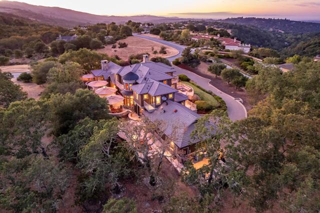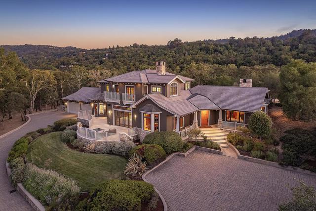 On the market for the first time, this exceptional Craftsman home is located in prestigious Blue Oaks, an enclave of estate homes surrounded by 285 acres of open space & trails. Built by Chessler Construction in 2003, the home showcases timeless architecture, exquisite woodwork, & a flexible multi-level floor plan designed for today's lifestyle. Set on approx. 1.29 acres, the property enjoys a backdrop of natural beauty with miles of nearby hiking trails, plus sweeping views out to the San Francisco Bay & East Bay hills from the top level. Main level is ideal for both grand entertaining & comfortable everyday living, offering formal venues, professional office, & seamless connection to expansive outdoor spaces that include front & rear terraces, loggia with fireplace, plus an in-ground spa & outdoor shower. Primary suite has Bay views & each bedroom has private balconies & elegantly appointed bathrooms. Finishing touches include an attached 4-car garage, backup generator, & a community pool & clubhouse. Blue Oaks location offers quick access to Portola Valley's charming town center & excellent public & privates schools, with Stanford University just 15 minutes away. Acreage & open space provide unmatched lifestyle in one of the area's most sought-after neighborhoods.