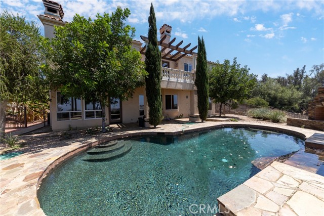 Welcome to the luxury Hillcreast Estates community! This is a beautiful, Meditterranean architutual design with 4 bedroom and 51/2 bathrooms. Entryway is tile flooring with spiral staircase to second level. Main level floor features one bedroom and 1 and 1/2 baths, formal living room with fireplace. Formal dining room features a fireplace and wet bar. Large kitchen with double ovens, double microwaves, granite countertops that connect with the living room. Large windows overlook the swimming pool and hills. Upstairs features loft with a wet bar, large balcony and 2 bedrooms each with full baths. Master bedroom includes large open floor plan with fireplace, jaczzi tub, wet bar, double sinks, private sauna and large balcony. Long private driveway with electronic security gate and 3 car garage. The backyard features private swimming pool, jacuzzi, fireplace and barbecue island. This home also comes with security camera's both inside and out. Very private and quiet neighborhood that is close to shopping centers.