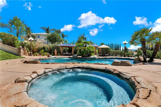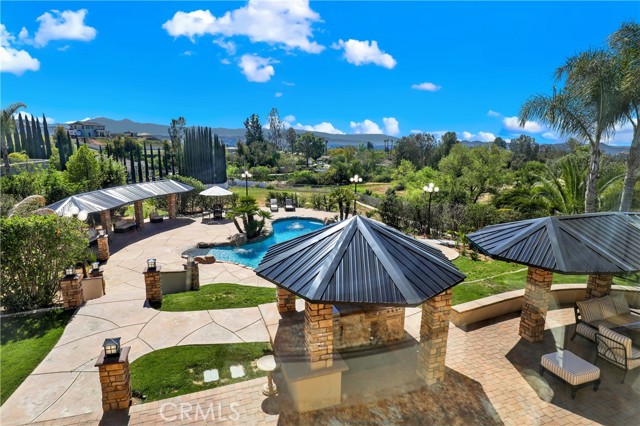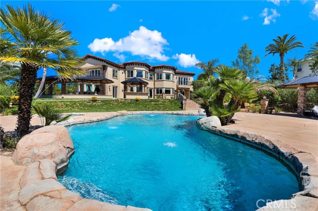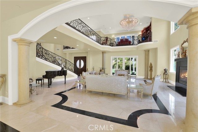 Exquisite Riverside Estate in Alessandro Heights – A Private Paradise Awaits Welcome to your own piece of paradise nestled in the prestigious White Gate community of Alessandro Heights, one of Riverside’s most sought-after neighborhoods. Tucked just off Overlook Parkway, this grand estate offers over 8,800 sq ft of luxurious living space, plus a private casita perfect for guests or multi-generational living. From the moment you step through the front doors, pride of ownership is evident throughout. Enter into a stunning grand foyer featuring a dramatic spiral staircase, Italian marble floors, and soaring cathedral ceilings adorned with opulent chandeliers. The formal living room, anchored by a stately fireplace, flows seamlessly into the elegant dining room, both appointed with custom Italian furnishings that evoke timeless sophistication. An arched hallway leads you to the heart of the home: a massive family room with a second fireplace, built-in bar, and a sunlit breakfast nook that opens to the lush backyard. The chef’s kitchen is a dream come true, equipped with dual islands, Monogram appliances, gleaming midnight sparkle granite countertops, and an abundance of custom cabinetry — perfect for both everyday living and grand-scale entertaining. The first floor also boasts a secondary family room for private gatherings or use as an additional bedroom, a spacious office with dual entry, a large laundry room, and a versatile bonus room just off the garage. Dual staircases provide easy access to the expansive second level, where you’ll find four ensuite bedrooms, including a showstopping primary suite with its own kitchenette, a spa-inspired bathroom with an oversized soaking tub, and a massive walk-in closet. Also, Furniture can be discussed with terms. Outside, the fully gated estate includes a private security gate, expansive driveway with ample parking, and an oversized garage—each bay with its own dedicated storage room. The meticulously landscaped backyard is an entertainer’s dream with multiple covered patios, a fully-equipped outdoor kitchen with BBQ, sink, fridge, and generous counter space, ideal for hosting events or relaxing with family. Descend to your own resort-style pool with beach entry and water features, all set within a tranquil, private setting. Call today to schedule your private, pre-approved tour!