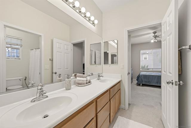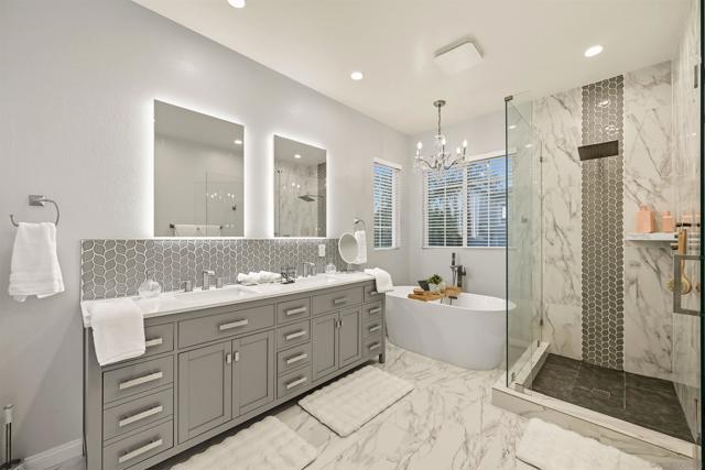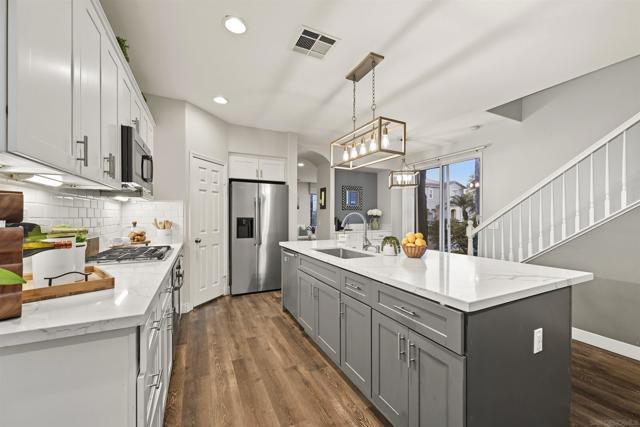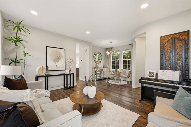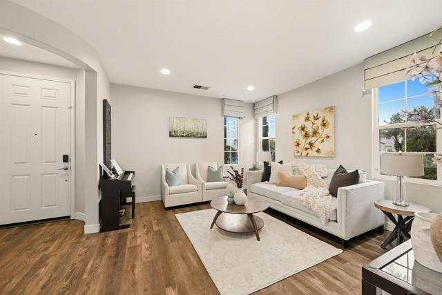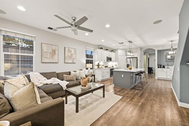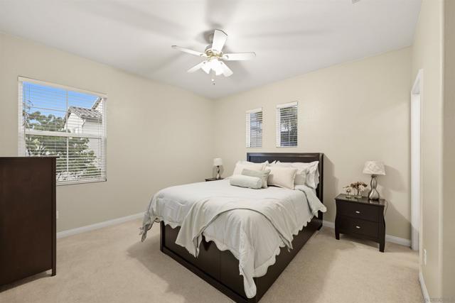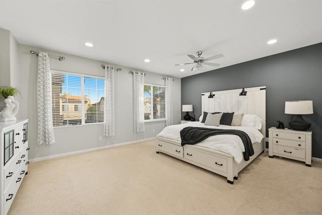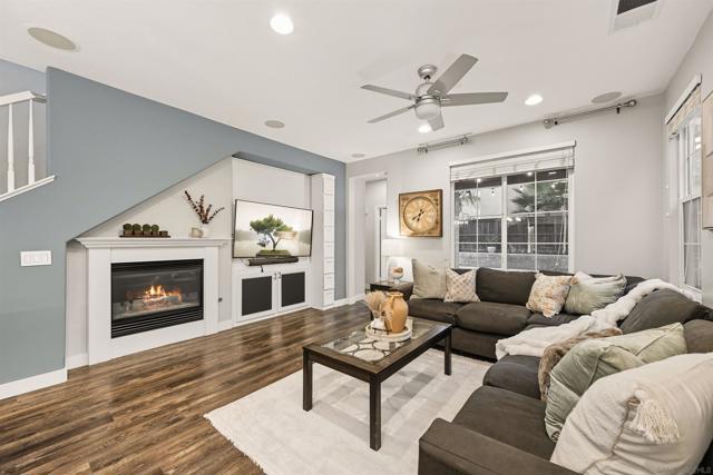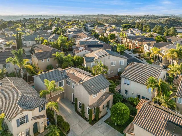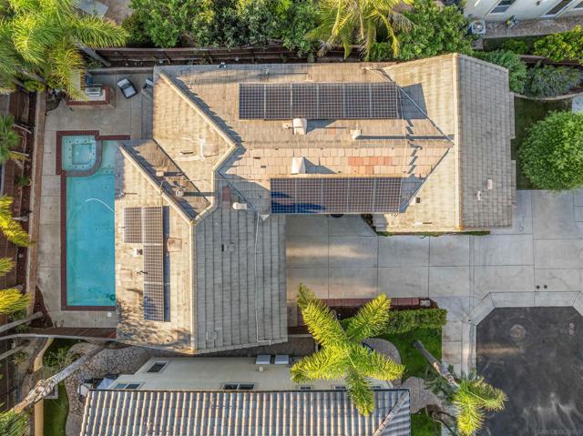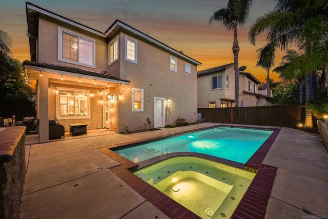 Welcome to San Lorenza in Torrey Highlands! This Tuscan-style 4 bed, 3.5 bath home features the community’s largest floor plan, upgraded with owned solar and EV charging. Ideally located in the award-winning Poway Unified School District, with Westview High and Mesa Verde Middle within zoning for and mere blocks from Willow Grove Elementary, it blends elegance with everyday convenience. The open design is perfect for entertaining and daily life, with formal living and dining rooms, a spacious family room with fireplace and built-ins, and a gourmet kitchen featuring stainless steel appliances, oversized pantry, and abundant cabinetry. Upstairs, the primary suite retreat offers a spa-inspired bath and walk-in closet, while an additional en suite bedroom is ideal for guests or multi-generational living. Set at the end of a quiet cul-de-sac, this home showcases one of the largest backyards in the neighborhood—complete with a heated pool and spa, built-in gas BBQ, and covered patio. It’s your own private oasis for relaxation and gatherings. Just minutes from Hwy 56, Torrey Pines Beach, scenic hiking trails, parks, YMCA, and shopping, this home blends resort-style living with one of San Diego’s most desirable locations.