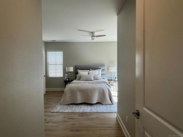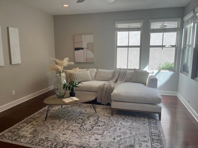 Welcome to this Hampton Lane Plan 2 home in the sought-after Pacific Highlands Ranch (PHR) community, just blocks from top-rated schools and parks. Wood floors flow seamlessly throughout the home, while the south-facing yard fills the space with abundant natural light. The first floor features a versatile layout with a formal living room, office, a bedroom, and a full bath. Upstairs, the second floor offers a spacious primary suite with a walk-in closet and a private bath retreat. Two additional bedrooms, a full bath, and a dedicated laundry room complete the upper level.