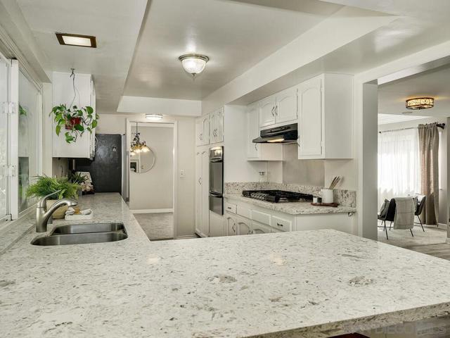 San Carlos gem! Spacious inside and out. 5 rooms upstairs, large living room and family room with access to garage. Partial open kitchen to family room concept. NEW floors throughout the house, NEW quartz kitchen counter tops, and freshly painted interior. A total of 5 rooms upstairs the re is a large primary room with a deck overlooking the mountain scape towards the east, private bathroom and walk in closet. The other 4 rooms consist of 3 bedrooms with large closets, and a BONUS room currently an OFFICE with possibilities for a 5th bedroom conversion possibilities. Home has newer windows, a fine working HVAC system with new insulation. West of Santee and La Mesa, within the City of San Diego, this San Carlos home is located within minutes to beaches and downtown. This lovely homes sits at the foot of a local eastern mountain enhancing the look and feel of a larger backyard. Lot extends past the fence. Your backyard serves as a private gateway to nature for serenity and peaceful living. This home is close to local schools, steps from popular Mission Trails Regional Park, Tuxedo and Bedlow Park. The home is just a short drive to Lake Murray, San Diego State, Snap Dragon Stadium and not a far commute to San Diego Zoo, Point Loma Nazarene College, USD, Downtown, beaches, MCRD, and MCAS Miramar. Near I 15, 52, 8 FWY without the traffic or noise.