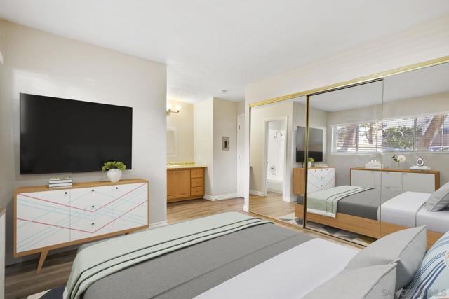 Welcome home to this beautifully updated one level, 2-bedroom condo in the heart of Mission Valley! Offering a bright and airy living space, this residence features an open layout filled with natural light, recently updated flooring, upgraded lighting, and a clean slate ready for you to make it your home. A few photorealistic images of staging capture its potential. The spacious living and dining areas flow seamlessly to a private patio—perfect for morning coffee, outdoor dining, or entertaining under the San Diego sun. The desirable Park Villas North community includes water and trash in the HOA, lush landscaping, community pool and spa. Don’t miss this opportunity to own a stylish retreat with indoor-outdoor appeal in one of San Diego’s most convenient neighborhoods! Adjacent to Park Villas North is the San Diego River, run by a conservancy that protects the vast expanse of river, green vegetation, birds and other wildlife that make it their home. An ideal place to take a morning or evening stroll or an easy bike ride. The river offers peace and serenity in an otherwise bustling community. Mission Valley has grown by leaps and bounds into a community with world class restaurants, a multitude of shopping centers, lovely hotels, newly developed condominiums, commercial buildings, and Snapdragon Stadium all making it one of the hottest areas in San Diego County. Four major malls – Fashion Valley, Fenton Marketplace, Hazard Center and Mission Valley Mall, as well as several smaller shopping centers, are all within walking or biking distance from Park Villas North.