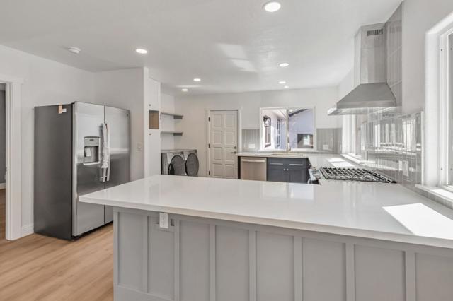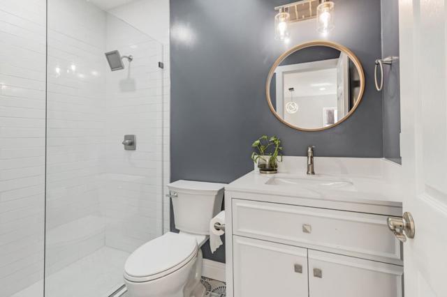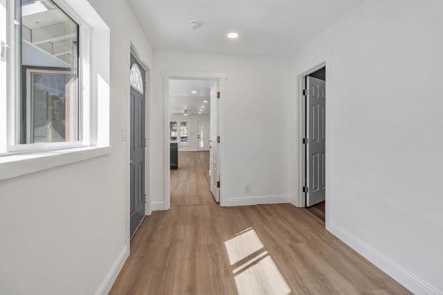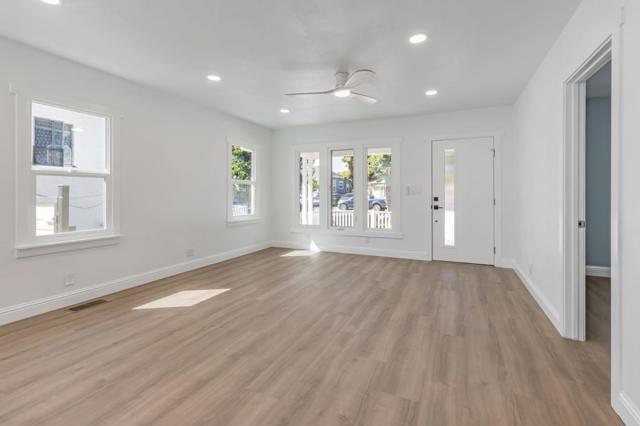 ( Virtually Staged). Driveway turnaround to be constructed, at Buyer's request, to allow vehicles to exit property forward on to 10th street. Welcome to this charming 4-bedroom, 2.5-bathroom home located close to downtown San Jose and San Jose State U. 1,484 sq ft of living space, this residence offers a blend of comfort and functionality. It can easily be used either as a home for the family, or as a home plus rental space. The kitchen is a standout feature, quartz countertops, an island and gas cooking.The living area is inviting and comfortable. The new flooring throughout the home is both enhancing and easy to maintain. Laundry is located inside with new washer and dryer. Ideal for families, this home offers a blend of practical living spaces in a prime San Jose location. Completely remodeled with permits. New kitchen appliances, new furnace, new roof, new tankless water heater, new flooring, new paint, new bathrooms and a new large detached 2 car garage (with a separate bath of it's own). Driveway that will accomodate multiple cars or large vehicles. The home has many possibilites that could house two households. Front of house - 2 bedrooms 1 bath and back of house that can be locked off, has additional 2 bedrooms and 1 bath with a separate entrance.