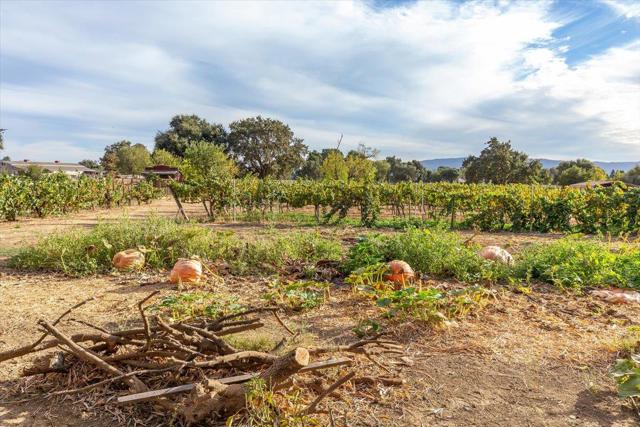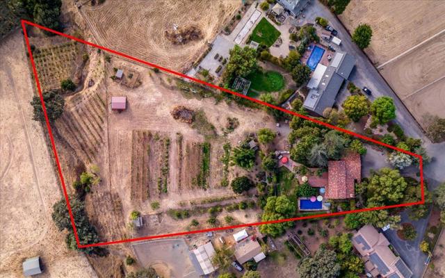 Spectacular Spanish style home in a cul-de-sac location on 2.77 acres with plenty of room for your horse facilities. The living room features a vaulted ceiling, hickory wood floors, wood burning fireplace with stone surround, blower and custom mantel and corbels. The formal dining room is adjacent to the kitchen featuring LG stainless steel appliances and walk-in pantry. Downstairs bedroom and full bath. Additional interior features include Spanish tile floors, knotty alder interior doors, iron stair railing and hickory treads. Alder wood bar with built-in wine refrigerator. Updated windows including a new Anderson slider in the family room in 2024. Wood window shutters and updated insulation in the attic and over garage. A new tile roof was installed in 2007. The rear yard includes a massive freestanding pergola (previously the tasting room), outdoor kitchen with Viking appliances including a wok burner, infrared grill and wood fired pizza oven. The pool liner, filter, heater and pump were replaced in 2024. Several outbuildings, chicken & turkey coops and many fruit trees as well as squash and artichokes in the garden. Previously home to Creekview Winery on the South County Wine Trail. Power to the vineyard which includes 3/4 acre of chardonnay, merlot, cabernet, malbec and zin.