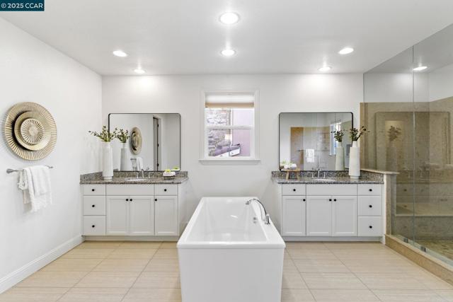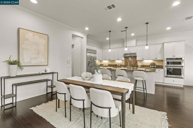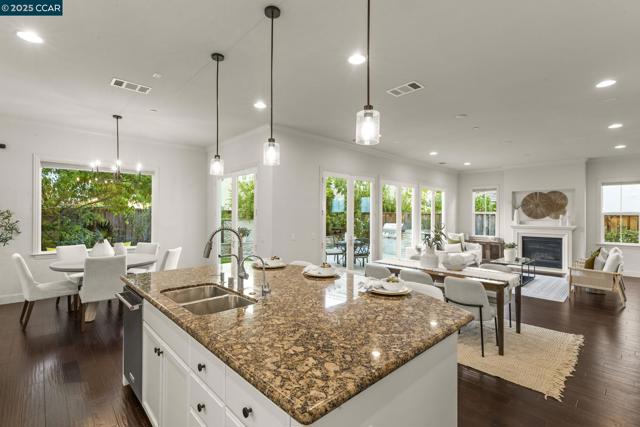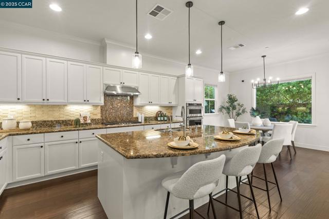 Stunning Avanti Heights home in Gale Ranch tucked away on a quiet court A charming covered porch with decorative arches leads you into a thoughtfully designed floor plan. Downstairs Bedroom Suite is perfect for guests or in-laws. Great Room has hardwood floors, gas fireplace, crown molding, recessed lighting & expansive glass doors and large dining area. The gourmet kitchen has slab granite countertops, stone tile backsplash, & a large island with bar seating. Stainless steel appliances include a built-in refrigerator, 5-burner gas cooktop, built-in oven & convection microwave. Enjoy a spacious walk-in pantry and a sunny breakfast nook. Large loft with ceiling fans & built-in cabinetry - ideal for a media space, office, or playroom. Spacious upstairs laundry room. There are 2 secondary bedroom suites w/ private bathrooms, ceiling fans & organizers in the closets. The Luxurious primary suite retreat to a generous primary bedroom featuring a coffered ceiling, crown molding, and ceiling fan. The spa-like bathroom offers two separate vanities, a soaking tub, a large walk-in shower w/ glass enclosure. The charming backyard is designed for entertaining w/ tiled & stone pavers patios, BBQ station, fountain, fruit trees & grassy areas.