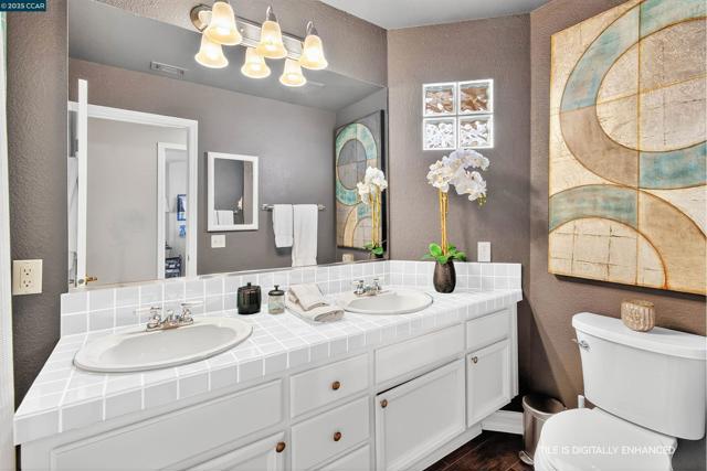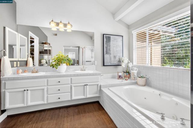 A slice of perfection in The Lakes at Canyon Lakes, a 24/7 staffed gated San Ramon community nestled along the Canyon Lakes 18-hole golf course surrounded by resort-style amenities, pools,clubhouse,tennis/pickleball cts, miles of walking paths. $150,000+/- in upgrades/features.1960+/-SF 2-level townhome in Sunrise Cove neighborhood. Meticulously maintained. 3 bds. 2.5 bths. New LVP/carpet flrs.Fresh int. paint. Recessed lighting. Custom plantation shutters on 23 windows. Upgraded wiring. 16 owned Tesla solar panels, battery wall & charger. Vaulted ceilings.Skylights.French dr access to beautifully designed bkyd.Water-proof pergola.Stamped concrete patio. New Cal Spa 4-person hot tub.Privacy fencing.Chef’s kitchen w/granite counters, decorative tile bksplsh,peninsula island/breakfast bar. endant lighting. Samsung 4-dr frig.New KitchenAid dishwasher. Range & microwave. Fam rm/casual dining.Gas frp in living/dining area.Primary suite w/vaulted ceiling, walk-in closet.En suite w/dual-sink vanity, jetted tub, large shwr, new toilet.Frt-facing bdrm w/vaulted ceiling.2-car garage. Newer roof and gutters. Laundry rm.Ring drbell.Privacy, security.2 mi to Crow Canyon Commons Shopping Ctr, Iron Horse Trail, freeway.Near top-rated SRVUSD schls, parks, yr-round farmers market at City Center.