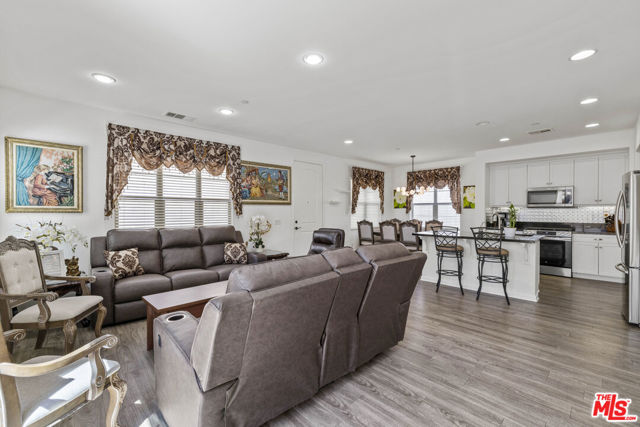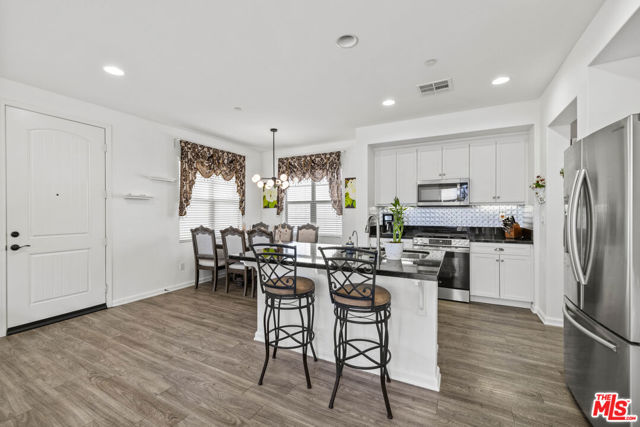Welcome to Your Upgraded Retreat in Villa Metro, Santa Clarita. Step into this beautifully maintained, detached single-family home nestled in the highly desirable Villa Metro community of Santa Clarita. With 3 spacious bedrooms and 3 full bathrooms, this bright and inviting residence blends contemporary style with thoughtful upgrades for modern living. Enjoy a seamless open-concept floor plan that connects the living, dining, and kitchen areas perfect for entertaining or relaxing with loved ones. The kitchen is a standout, boasting an upgraded KitchenAid stainless steel dishwasher, Whirlpool stainless steel microwave, and a modern GE gas range with air fry function and WiFi connectivity offering both style and high performance for the home chef. Thoughtfully designed for comfort and flexibility, the home features a bedroom and full bathroom conveniently located downstairs, ideal for guests, a home office, or multi-generational living. Upstairs, the second bedroom includes its own private en-suite bath, creating a dual suite-style layout perfect for added privacy or hosting. Step outside to your private patio, ideal for morning coffee or relaxing evenings under the stars. A spacious 2-car garage with direct access adds extra ease and functionality. As a resident of Villa Metro, you'll enjoy resort-style amenities including a clubhouse, sparkling pool and spa, fire pit, children's playground, and a lush community garden. Commuters will love the proximity to Metrolink stations, and everyone will appreciate being just minutes from shopping, dining, and more. Turnkey. Stylish. Convenient. Don't miss your chance to call this move-in ready gem your new home! There is Mello Roos: $2,071/year.