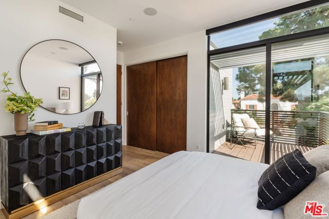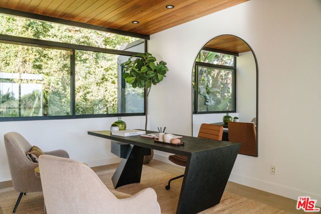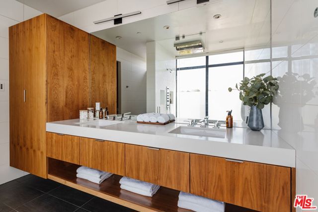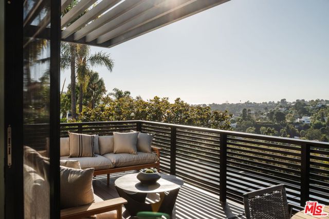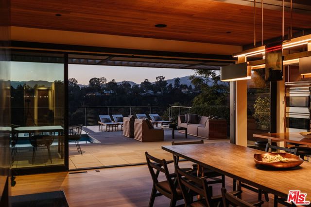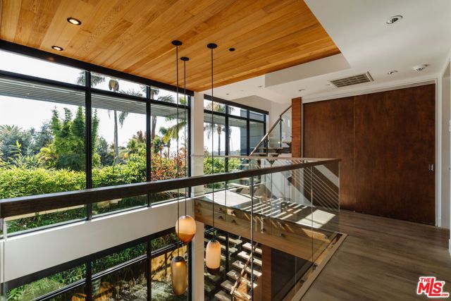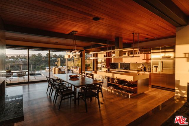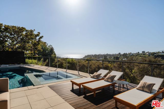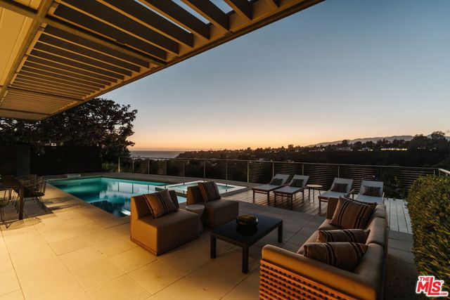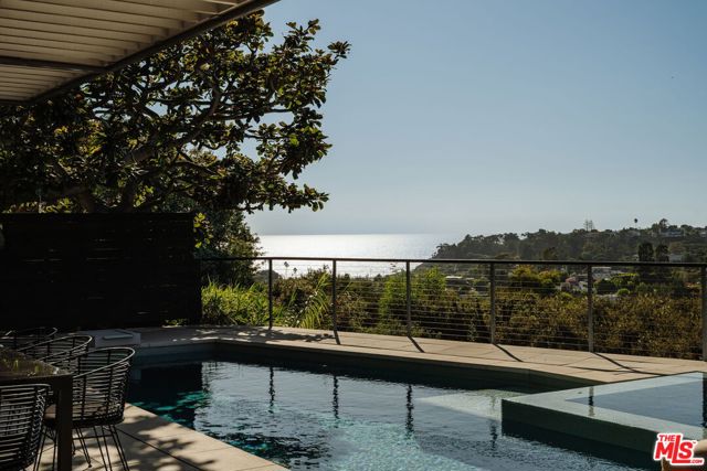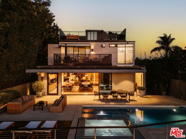 A modern architectural icon nestled in the coveted Santa Monica Canyon, 721 Adelaide Place exemplifies the visionary design of Ray Kappe, FAIA, whose renowned work defines the "apotheosis of the California House." This LEED Gold Certified residence seamlessly blends sculptural form, environmental sensitivity, and a profound connection to nature. Spanning nearly 5,000 square feet, the home is intentionally designed to celebrate volume, light, and awe-inspiring ocean, coastline, and mountain views. Upon entering, a dramatic two-story foyer sets an impressive tone. Here, a sleek floating staircase serves as a sculptural centerpiece, floor-to-ceiling glass walls allow radiant natural light to fill the space, and artisan craftsmanship is on full display with the use of wood, steel, and stone. Open-concept living and dining areas are positioned around a two-way Corten steel fireplace with a marble hearth, creating a sophisticated and inviting ambiance. The Arc Linea chef's kitchen is a showpiece of modern design and functionality, featuring a Crocodile Caesarstone backsplash, a butler's pantry, and professional-grade Wolf and Miele appliances. Retractable glass walls open the living areas to an outdoor sanctuary complete with covered and uncovered patios, a sparkling pool, an infinity-edged spa, an outdoor shower, and panoramic ocean and mountain views that elevate entertaining. Upstairs, the primary suite offers a retreat of exceptional comfort and style. Here, a private deck captures breathtaking views, while the custom-designed walk-in closet and luxurious ensuite--featuring dual vanities and an ocean-view shower--enhance daily living. Three additional bedrooms, including one on the main level, each open to private terraces, complemented by a versatile office and lower level media room. An expansive rooftop deck with a firepit crowns the home, offering a spectacular vantage for sunsets over the Pacific. Advanced smart home tech, including Control4 home automation, integrated surround sound, a Generac generator, and solar panels, ensures convenience and efficiency. Other notable features include mature landscaping that envelops the property in serenity and seclusion, a two-car garage, and automatic driveway and pedestrian gates. Supremely situated in one of Santa Monica's most desirable enclaves, this home captures the essence of California coastal living--mere moments from the beach, world-class dining and shopping along Ocean and Montana Avenues, and just minutes from the Riviera Country Club. 721 Adelaide Place stands as a testament to timeless modernism and coastal refinement, a rare architectural achievement where design and lifestyle converge.