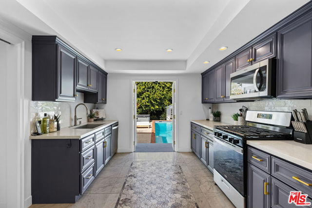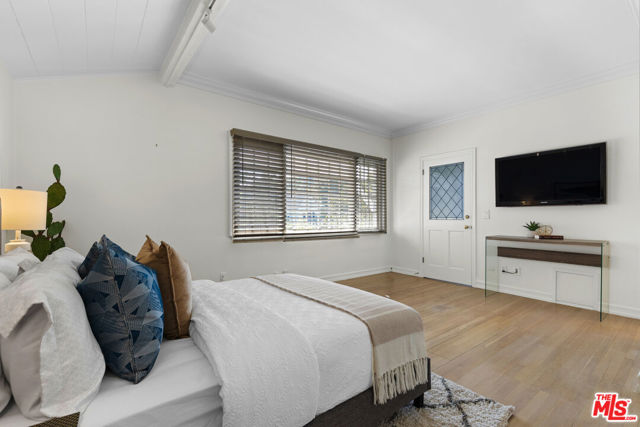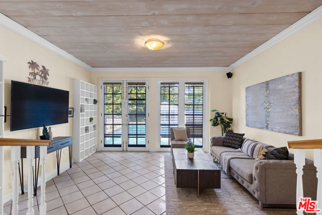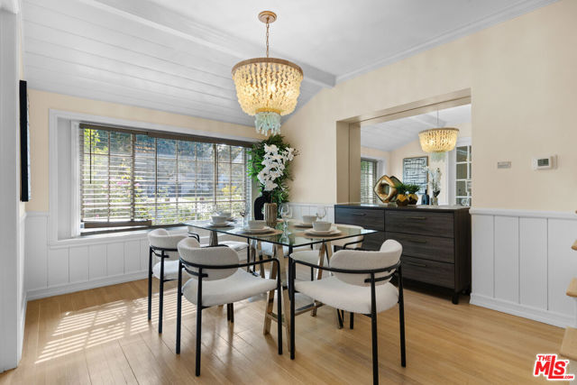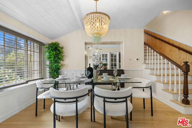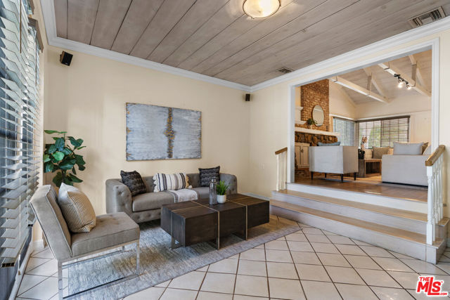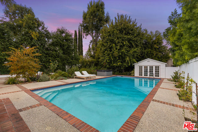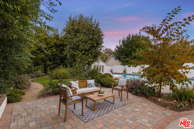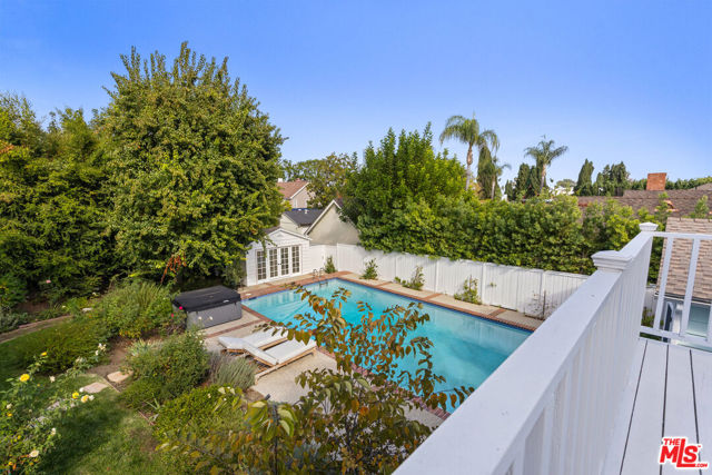 Located in the heart of Sherman Oaks, this inviting traditional residence embodies the best of Southern California living. Set on a beautifully landscaped, flat lot of over 9,000 square feet south of Ventura Boulevard, the home blends classic character with modern comfort in an entertainer's ideal setting. Step inside to a warm and elegant living room featuring wood-beamed ceilings, rich hardwood floors, and an oversized fireplace anchoring the space. The open layout flows seamlessly into a formal dining room and a bright, cheerful den with direct access to the resort-style backyard. The remodeled kitchen offers custom cabinetry, stainless steel appliances, and convenient access to outdoor entertaining areas. Upstairs, two spacious bedrooms include a primary with a private balcony overlooking the lush grounds and pool. Both rooms are filled with natural light and feature generous closet space. A large bathroom includes both a soaking tub and separate shower, with potential for reconfiguration to suit your style. A third bedroom on the main level, complete with its own full bathroom, provides flexibility for guests, a home office, or a fitness room. The expansive backyard is a private oasis, surrounded by mature landscaping, vibrant rose bushes, and towering hedges. A pool, pool house/cabana, and multiple seating areas create an ideal environment for relaxing or entertaining year-round. Additional highlights include a two-car attached garage with direct entry, HVAC, copper plumbing, an energy-efficient "cool" roof, and upgraded pool equipment. Located within the desirable Lanai Road Elementary and Hesby Oaks Charter school districts and just moments from Ventura Boulevard's boutiques and restaurants, this home perfectly captures the essence of relaxed, refined Sherman Oaks living just minutes from the city.
