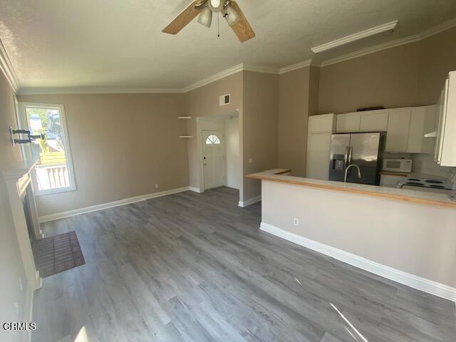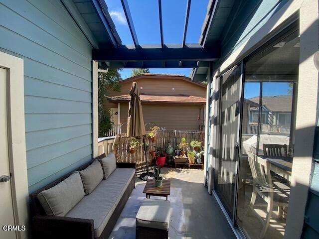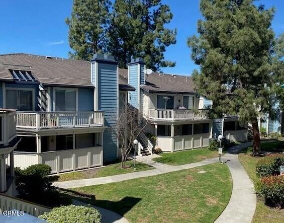 This upper-level has NEW flooring and Paint, 2-bedroom, 1 1/4-bath, condo with a bright open floor plan, including a spacious living room with high vaulted ceilings, crown molding and a welcoming fireplace. The kitchen opens to living space with bar seating, and dining area. The generous size primary bedroom offers a private vanity area, walk-in closet, high vaulted ceilings, and sliding door patio access. Step outside to a large wrap-around deck perfect for BBQ's and entertaining guests. The roomy 2nd bedroom has a generous closet with sliding doors and direct access to the Bathroom. You can enter the bathroom from the 2nd bedroom if desired, and also from the hallway. The laundry area is conveniently located in the guest bath area (washer/dryer are included). HOA covers earthquake insurance, water, trash, sewer, and exterior building + grounds maintenance, dog park, pool and spa. Summer days will feel like vacation at the community's sparkling pool + spa with outdoor shower and changing rooms. There is also a large park which is steps away from the community, ideal for a leisure walk, play area for kids, or family picnics. Take a leisurely stroll to nearby coffee shops, THE LAKES, where you can indulge in shopping, dining, and entertainment options galore. And with easy access to the 101, commuting to work or exploring all that Thousand Oaks has to offer