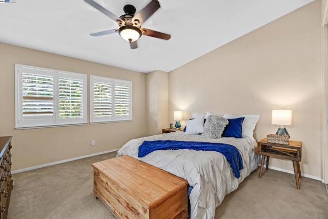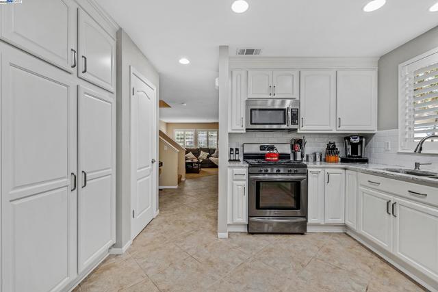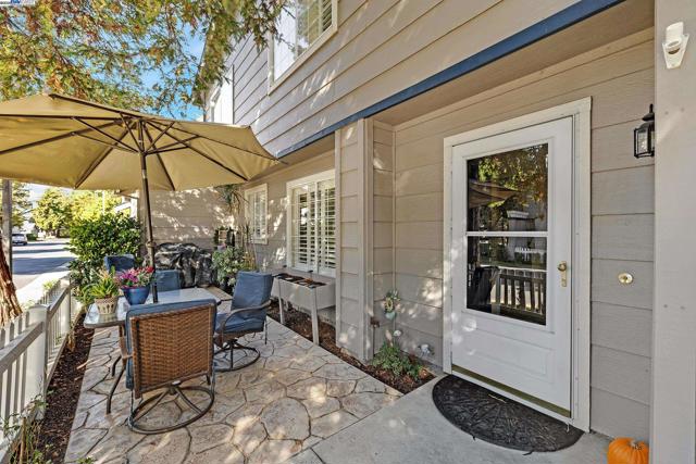 Charming, well-maintained END-UNIT home in a quiet, lovely, gated community. The open floor plan flows with living and dining areas ideal for quiet nights and lively gatherings. The bright, REMODELED kitchen features elegant Cambria quartz countertops, subway tile backsplash, upgraded cabinetry, and sleek stainless-steel appliances. Upgrades continue with a NEW HVAC system and stylish plantation shutters throughout. Upstairs, the versatile layout includes a bedroom that can serve as a home office/den, a second well-sized bedroom, and a full bathroom. The generous primary ensuite bedroom features dual sinks, ceiling fan, and mirrored closet. Enjoy outdoor living with two oversized patios, perfect for alfresco dining or a cup of coffee. The property has a convenient TWO-CAR garage. The refrigerator, washer, and dryer are INCLUDED. This professionally managed complex provides excellent amenities, including a community pool & spa, playground, and security gate/patrol. The HOA dues also cover essential services such as water, sewer, garbage, and exterior maintenance. Commuting and errands are a breeze with easy access to freeways, shopping, downtown Tracy, and the ACE train, making this home a perfect blend of comfort, style, and convenience. Welcome home!