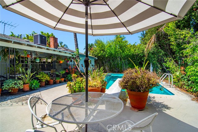 Come embrace this warm, wonderful pool home on an incredible quiet cul-de-sac situated in this sought-after Chandler Estates neighborhood of Sherman Oaks. Newer roof and large concrete drive deliver a pleasing first impression. Childhood memories of fun and frolic are certain to be created on this large concrete driveway & amazing serene street providing an ideal environment for enjoyment. Inside, a large living room with distinct stone fireplace and a unique lighted architectural ceiling accent is enhanced by beautiful vaulted wood beamed ceilings. An adjoining spacious formal dining room offers smooth ceilings and recessed lighting. Separate family room affords a cozy fireplace and classic wet-bar. Spacious and bright kitchen provides ample light wood cabinetry, granite counters, peninsula and an ideal breakfast area. At the east wing enjoy a secluded bedroom and bathroom. Your primary suite features a private bath with convenient rear yard access. Two additional bedrooms and a full bath add to the appeal. Outside, discover a large gated covered dining/entertaining arena that leads to a private rear yard with huge refreshing pool. Just down the street to Sherman Oaks Rec Center/park, brand new Trader Joes, Westfield Fashion Center & all the shops & yummy eateries that line the Blvd. Don’t miss!