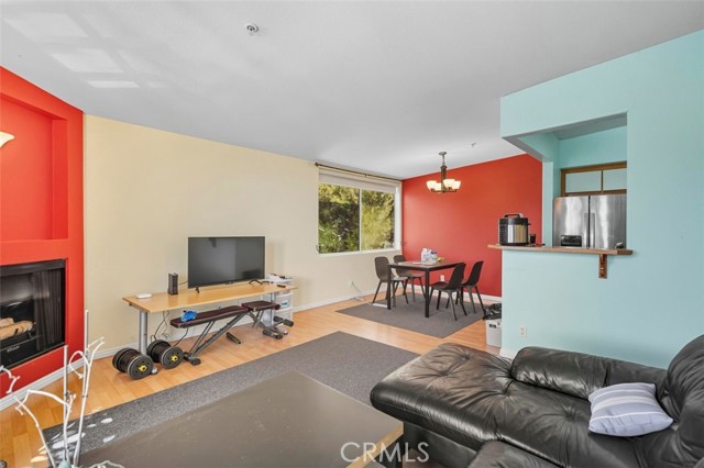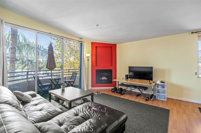 Fantastic Top-Floor Corner Condo | 2 Bed · 2 Bath · 2 side-by-side-Car Garage. Light and bright throughout, it features soaring ceilings, an open floorplan, and beautiful wood-like laminate flooring. A newer AC (2022) adds comfort year-round. The chef’s kitchen is a showstopper with granite countertops, Whirlpool stainless steel appliances and a double sink. It opens to the spacious dining area and family room with a cozy gas fireplace. Large sliding doors lead to your private balcony—perfect for enjoying your favorite drink while taking in views of the marine layer rolling over the southern mountains. The oversized primary suite includes newer triple-pane soundproof windows, a large walk-in closet, and a stylish en-suite bath with dual sinks. The second bedroom, also upgraded with triple-pane windows, is well-sized and located near the hallway bath and in-unit laundry with GE washer/dryer (included). Best of all, no shared bedroom walls with neighbors. Community amenities include: Secure, gated 2-car side-by-side subterranean parking, Full fitness center. Steps to Starbucks, top Thai and Sushi spots, Jon’s Market, CVS, and just one minute to the 405. You’re warmly invited to call this beautiful condo home.