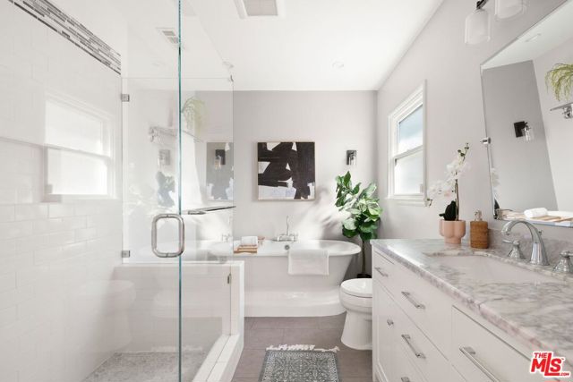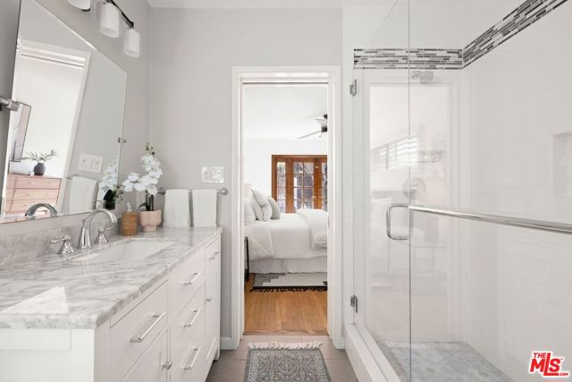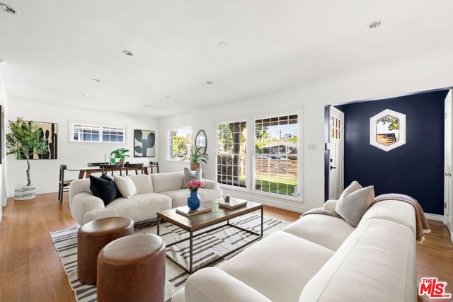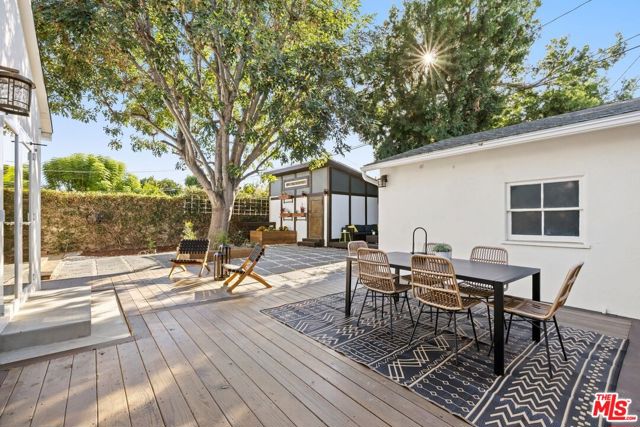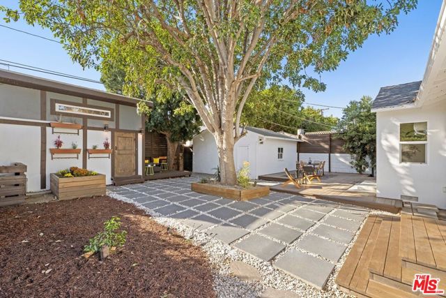 Nestled in a peaceful cul-de-sac in the heart of Valley Glen, this 3-bedroom, 2-bathroom home perfectly blends timeless charm with elevated comfort. The inviting living room centers around a classic brick fireplace, framed by original hardwood floors and abundant natural light. The open layout flows effortlessly into the updated kitchen, featuring stainless steel appliances, a breakfast bar, and the ideal setup for both daily living and entertaining. The primary suite feels like a retreat, complete with a walk-in closet, French doors that open to the backyard, and a spa-like en-suite bath. Step outside to your own private oasis, a fully gated yard with raised garden beds, gorgeous trees, and decks designed for relaxation, play, and endless gatherings. A standout feature is the detached, acoustically insulated music studio complete with its own mini-split system and dedicated 100-amp panel, perfect as a creative space, office, or potential ADU. The home is 1,655 sf, and the music studio is 205 sf. With its two-car garage, curated lighting, and a neighborly front porch, this Valley Glen gem offers the perfect blend of tranquility, style, and possibility.