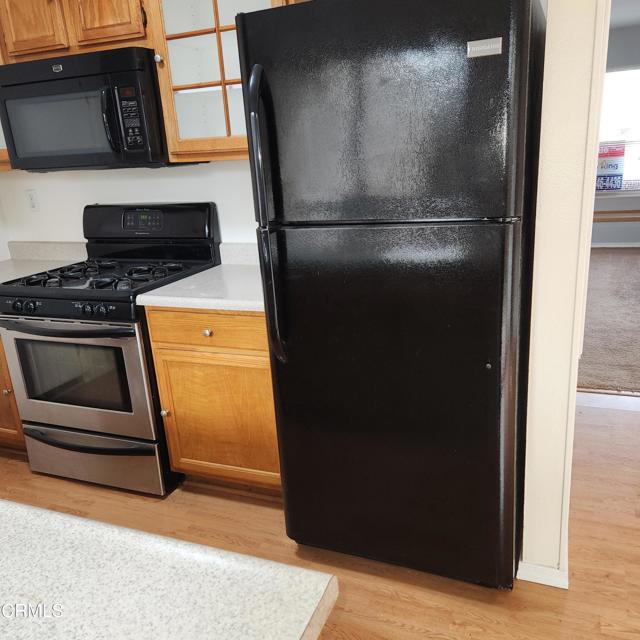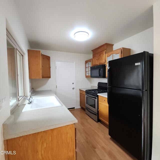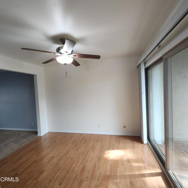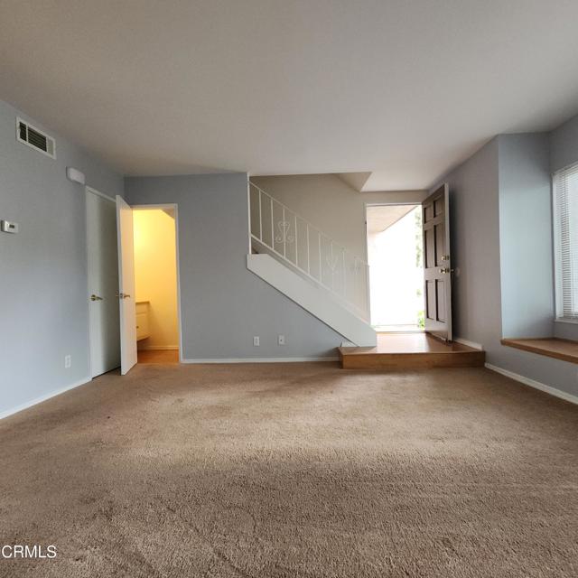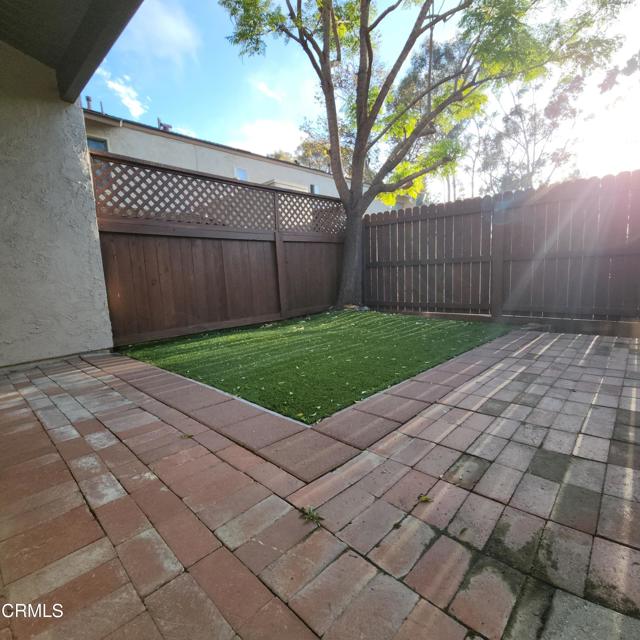 Welcome home to this charming end unit townhome just across the street from Baranca Vista Park. This home has lovely views overlooking the green space across the tree lined private drive. Dual paned windows and sliding glass doors provide an abundance of naturally filtered light throughout, giving the home a warm and inviting feeling while enhancing energy efficiency. Freshly painted and beautifly maintained, this home is move-in ready! The spacious primary bedroom boasts mirrored closet doors, plus an additional closet over the stairs. A second bedroom opens onto a large inviting balcony from which to enjoy the warm Ventura evenings. The rear patio and back yard are fully fenced and low maintenance. Prime location within the complex provide ample parking in additon to your private garage, driveway and assigned parking space.Todd Ranch has three pools and two clubhouses for you to enjoy, HOA dues include water and trash. There is easy access to the baranca walking trail, Baranca Vista Park, the Boys and Girls Club and the Ventura Community Park and Aquadic Center. It is only a short drive to grocery stores, restaurants and the 101/126 freeways, the beach, Ventura Harbor or the two off-leash dog parks.Prime location within the complex provide ample parking in additon to your private garage.This is a PUD (you own the building and the land) so VA and FHA financing are also available.Come take a look! You will see immediately that you are home!