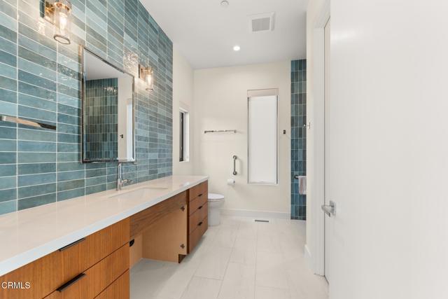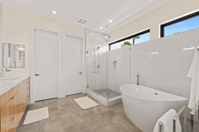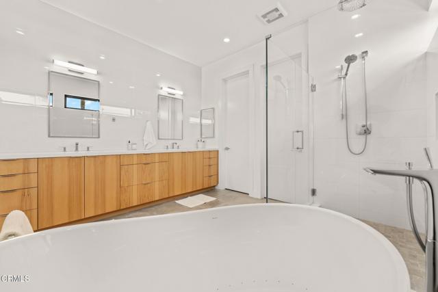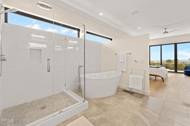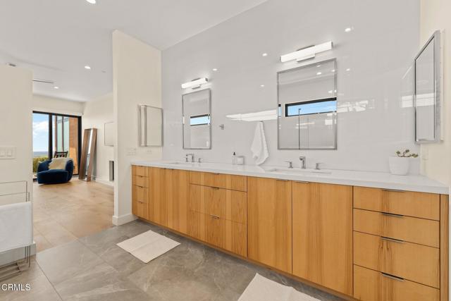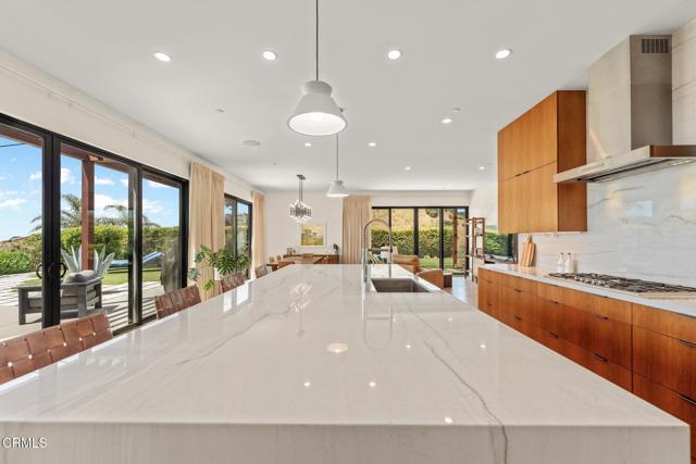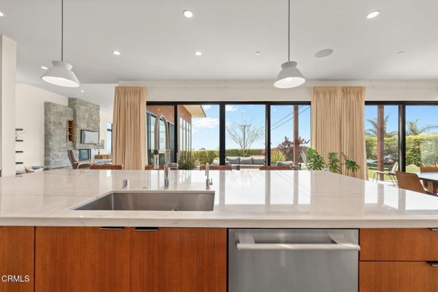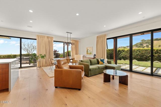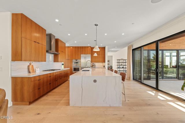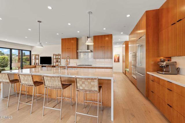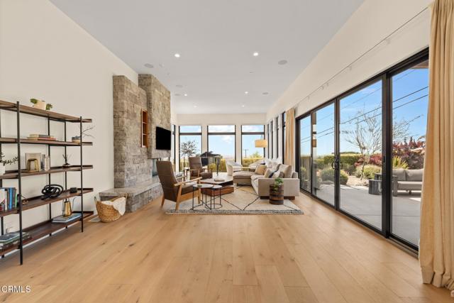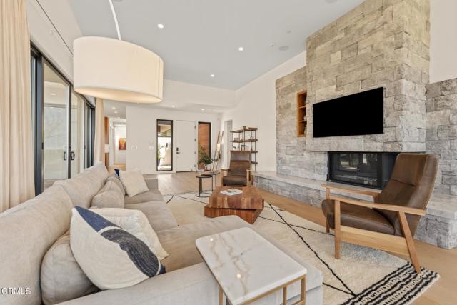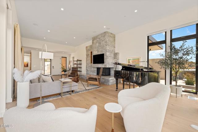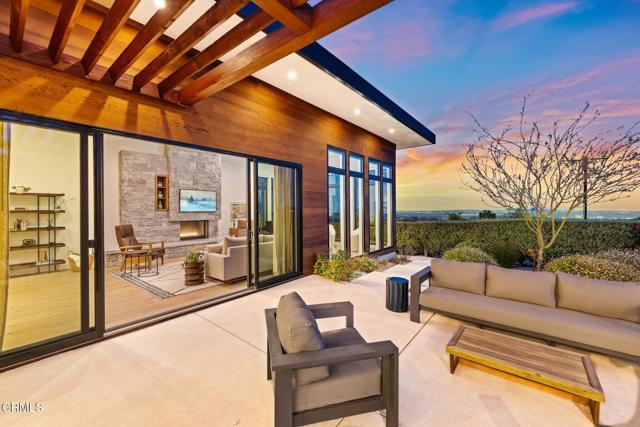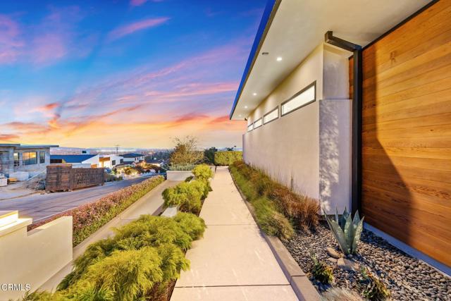 Experience elevated modern living in this architecturally refined home where every detail has been meticulously curated for comfort, style, and function. The heart of the home is a stunning kitchen featuring quartzite waterfall countertops, sleek custom cabinetry, and premium stainless steel Thermador appliances--all set atop wide plank white oak flooring that adds warmth and texture throughout.This gourmet kitchen flows effortlessly into a voluminous living room with soaring 11.5 -foot ceilings, framed by walls of glass that flood the space with natural light. A dramatic statement fireplace anchors the room, while panoramic ocean and city views serve as an ever-changing work of art.The luxurious primary suite offers a tranquil retreat, complete with its own sleek fireplace, a spacious spa-inspired bathroom, and a generous walk-in closet. Step out onto your private patio to soak in sweeping views and serene sunsets--an ideal space for morning coffee or quiet reflection.Outside, the home's exterior makes a bold impression with a sophisticated blend of natural cedar wood and smooth stucco. The beautifully landscaped yard offers room to relax or entertain, and includes a detached music studio--perfect for creative pursuits, a home office, or guest space.Every element of this home has been thoughtfully designed with high-end materials, abundant natural light, and seamless indoor-outdoor living, creating a rare blend of modern luxury and everyday comfort.