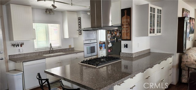 Remodeled 1,440 sq. ft. 2-bedroom, 2-bath mobile home in Vista Village, a 55+ owner-occupied community in Vista, CA. This home features a spacious living room, dining area, kitchen with quartz countertops, and a pantry with ample storage. Updates include repaired sub-flooring with new luxury vinyl plank flooring. Appliances include a washer, dryer, dishwasher, 5-burner cooktop, wall oven and microwave. Additional features include a three-phase cartridge water filtration system, ceiling-mounted stainless and glass cooktop vent, and BathFitter low-step showers with seats in both bathrooms. The property includes a large shed and access to community amenities such as a clubhouse, pool, spa, exercise and billiards rooms, laundry, and a dog park. The monthly assessment of $355 covers water, trash, Cox cable TV, internet, and common area maintenance. Conveniently located near grocery stores, pharmacies, and restaurants, with an NCTD bus stop at the front gate. Residents own a 1/138th interest in the park; no rentals allowed.