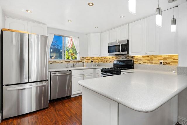 Spacious 2-bedroom, 2.5-bath townhome with 1,330 sq. ft. in the Bel Air Vista community! This beautifully maintained home features vaulted ceilings, luxury vinyl plank flooring, and a cozy stone fireplace. The open-concept kitchen and family room flow to a private patio—ideal for entertaining or relaxing. Upstairs, enjoy two large primary suites, each with its own private bath. Additional highlights include a two-car attached garage, guest powder room, and in-unit laundry. Water heater replaced within past 3 years. Most windows/sliders are new (except kitchen). The community offers a pool, spa, clubhouse, and garden. Conveniently located near Downtown Vista Village, restaurants, shops, Brengle Terrace Park, Moonlight Amphitheatre, and just 15 minutes to the beach!