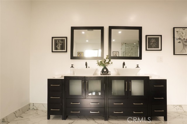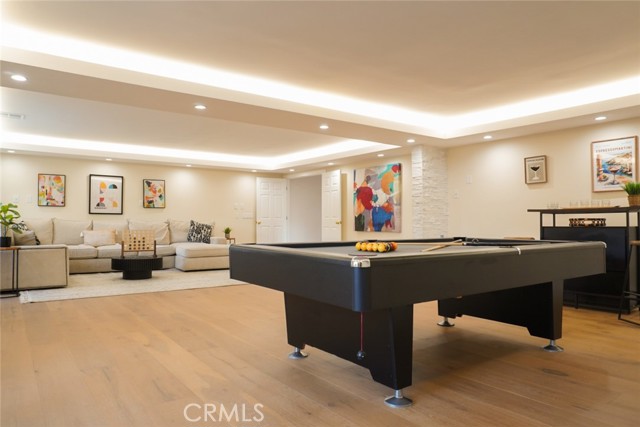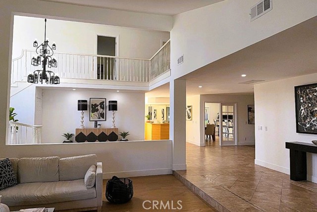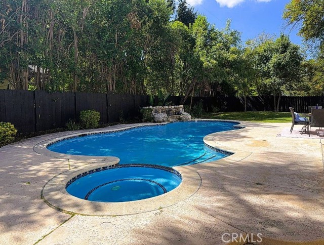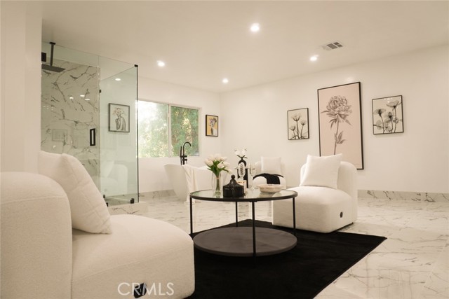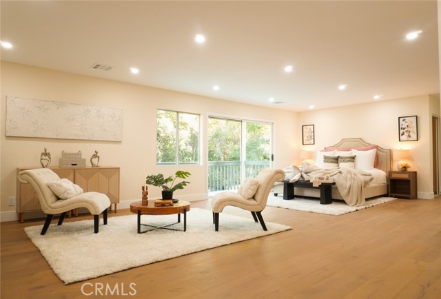 Welcome to a rare entertainer's retreat tucked behind a 100+ foot private driveway with gated entry. This Walnut Acres-area estate offers exceptional privacy and luxury on approximately 0.42 acres of lush, landscaped grounds. With recently completed major upgrades, this residence features 7,602 sq of refined living space, with 6 bedrooms and 6 bathrooms. A dramatic formal foyer introduces soaring ceilings, natural light, and a sweeping curved staircase. The formal living room features a fireplace and expansive windows, flowing seamlessly into the family room. The family room is complete with a full bar, second fireplace, and sliding access to the pool and outdoor living space. The gourmet kitchen boasts travertine and granite surfaces, abundant natural light, a spacious eat-in area, breakfast bar, and convenient pool access. An adjacent dining room opens to a private patio- perfect for alfresco entertaining. On the main level you'll find two bedrooms, from which one is en-suite, a powder room, and a versatile fitness room near the kitchen/laundry wing. Cascading curved staircase to the second floor with an ornate chandelier. A luxurious master suite (~1,000 sq ft) with private balcony overlooking the pool. sitting area, office nook, fireplace, dual walk-in closets, oversized bath with Roman tub, walk in shower, and dual vanities. Additional bedrooms, each with private bathrooms. A sprawling media/game room over (~700 sq ft), a soundproof recording studio ( a highlight for music lovers). And an office/guesthouse with its own private entrance. This prized location places you in a serene, residential corridor of Woodland Hills, yet close to shopping, dining, and entertainment. You'll enjoy both the peace of secluded estate and the convenience of nearby amenities. Come and explore more about this piece of gem!!!