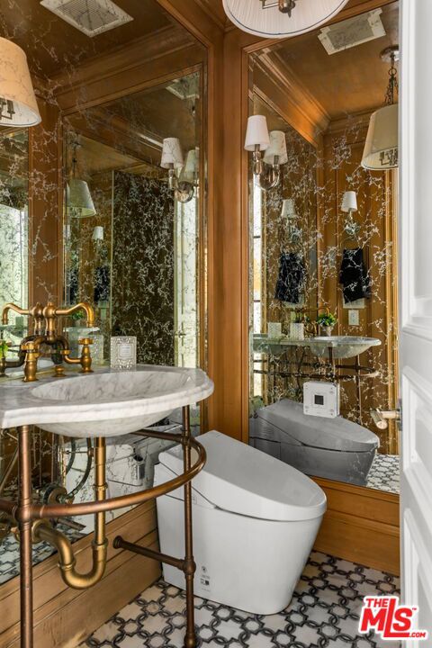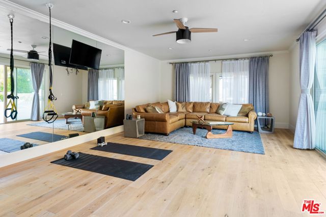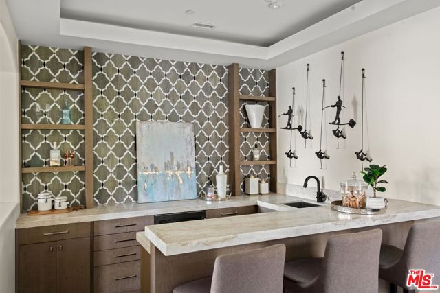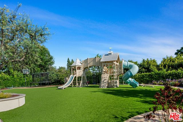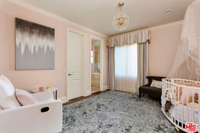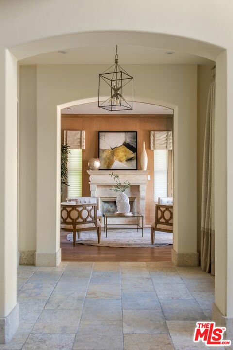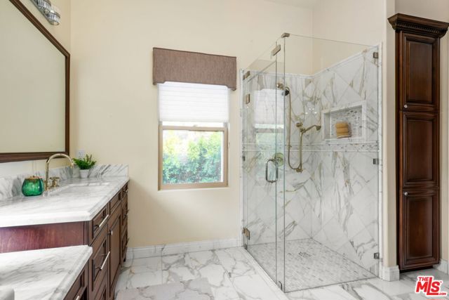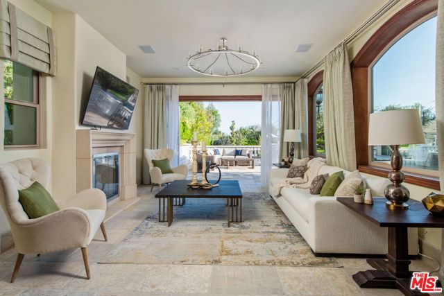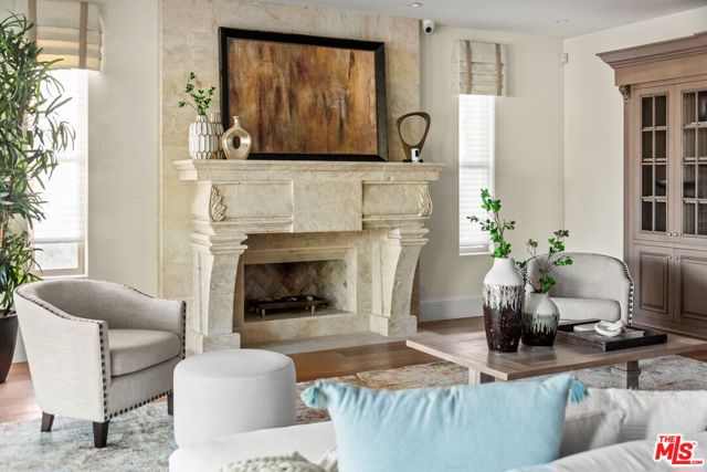 CUSTOM ESTATE WITH HIGH END DESIGNER FINISHES. Created for the most discerning of clientele who are accustomed to luxury and quality. Tucked down a private street, you are welcomed to this magnificent, sophisticated, palatial estate on a nearly one-acre flat lot. Every inch has been renovated to reflect designer taste, and beautiful materials. Light waterfalls into the gracious foyer, an entry that leads on one side into your paneled library/music room, then enjoy the beautiful breeze coming into a bright and cheery family room with full doors leading outside. Formal dining is an elegant affair, with soaring ceilings and grand chandelier setting the mood. Pass an entertainer's bar and revel in the majestic kitchen, complete with double islands, Sub Zero and Thermador appliances, Woodmode custom cabinetry, Calacatta marble countertops, butler's pantry and breakfast nook. The spacious living room boasts an imported Mediterranean limestone fireplace, large entertainment center, and is flanked by an en suite guest bedroom. The grand staircase whimsically transports you upstairs where you are greeted by a large guest bedroom, currently used as an office, with large balcony. A more majestic Primary bedroom is rarely encountered, from the floor to ceiling Venetian plaster that evokes such elegance and grace, to the sumptuous bathroom, and stately giant walk-in closet. Three further guest rooms, all en suite, and a grandiose play room make for a highly desirable and multi-functional layout, and complete the space. An impressive California kitchen makes outdoor dining a welcome affair, and the sparking pool with party deck and elevated hot tub is offset by mature olive trees and a sparkling fire pit. The pool house provides a perfect space for gathering, or perhaps a home gym. Gated and hedged for privacy, the opulent lot is set up for entertaining as well as leisurely domestic life. Mature olive trees sway, and water features provide ambiance - entertaining is a dream on these magnificent grounds, with parking for 20+ including a private driveway to the right of the property, perfect for parking your RV, horse trailers or boats. Shown by private appointment.
