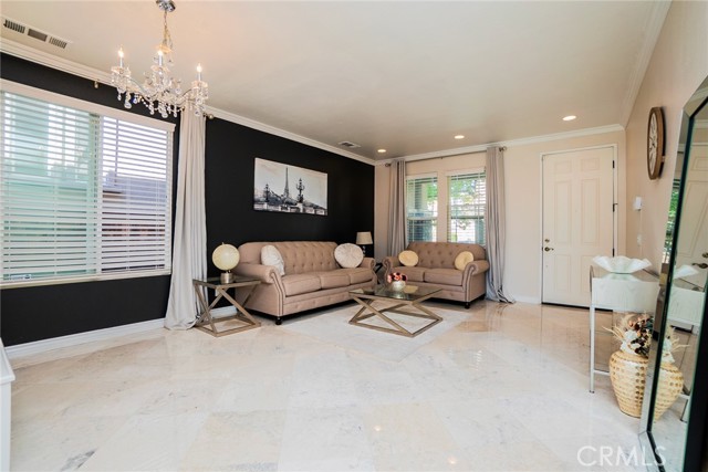 Hurry to see this amazing Chapman Heights home with brick accents on the 7th green of the Yucaipa Valley golf course! With fresher interior paint in neutral colors, this home is sure to impress with polished marble flooring, stainless appliances and an island kitchen with granite countertops. Upgraded crown moulding in all areas, updated bathrooms and new lighting including can lighting make this a must see. The family room off the kitchen with a fireplace and cherrywood flooring makes this the gathering place with views of the golf course. Upstairs has cherrywood flooring in the high traffic areas and has a second family room along with 3 bedrooms and 2 baths. 4 chandeliers, washer, dryer and fridge can be included! Hurry, before it's gone!