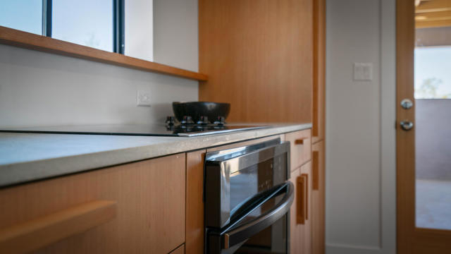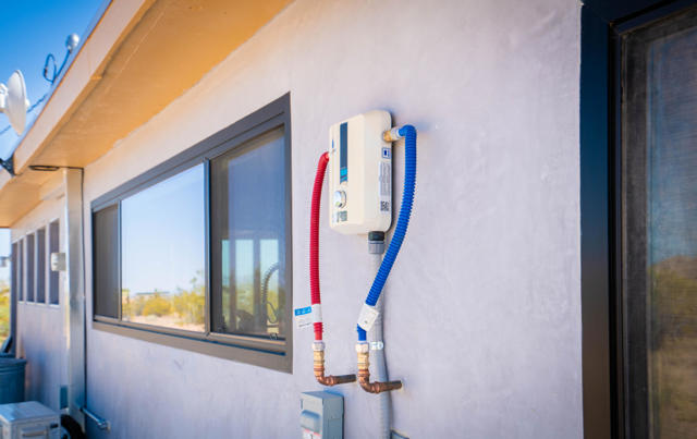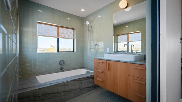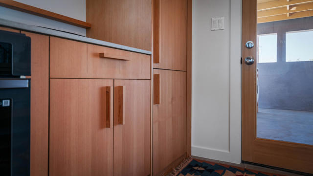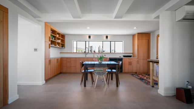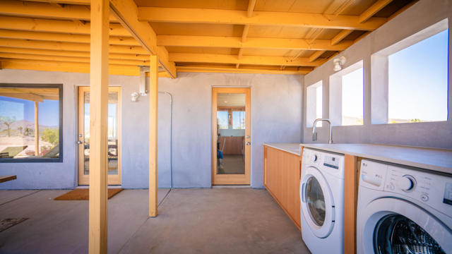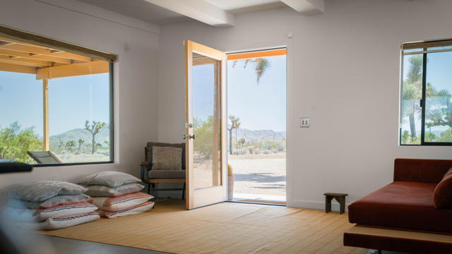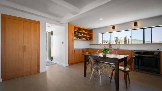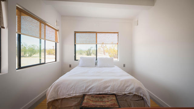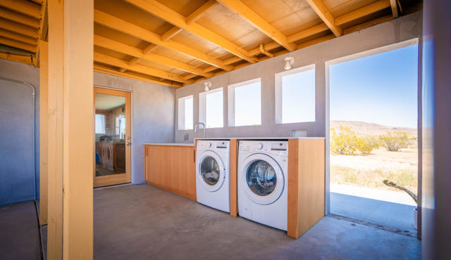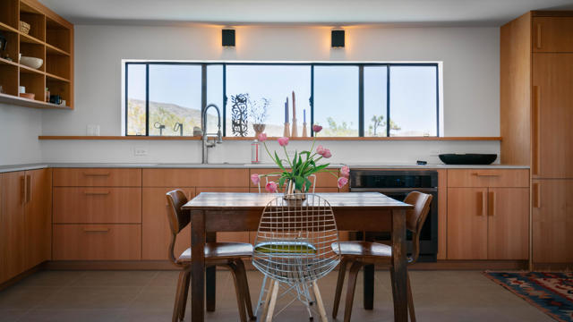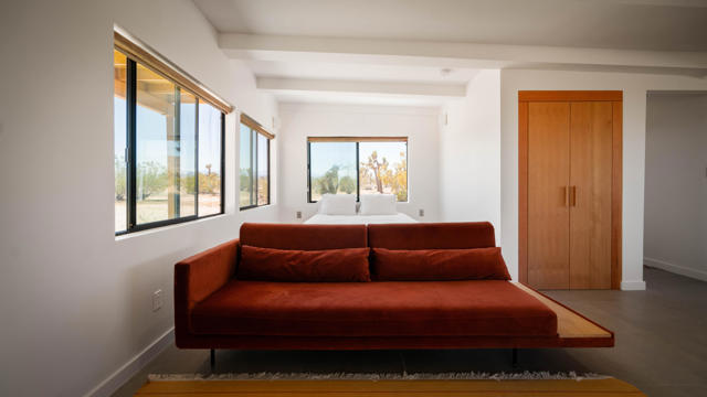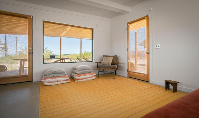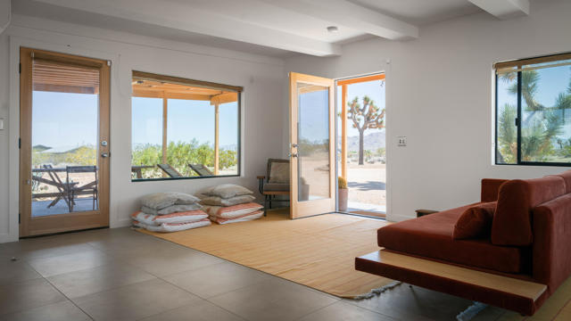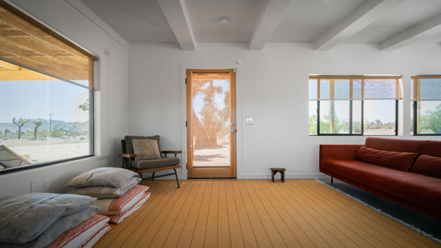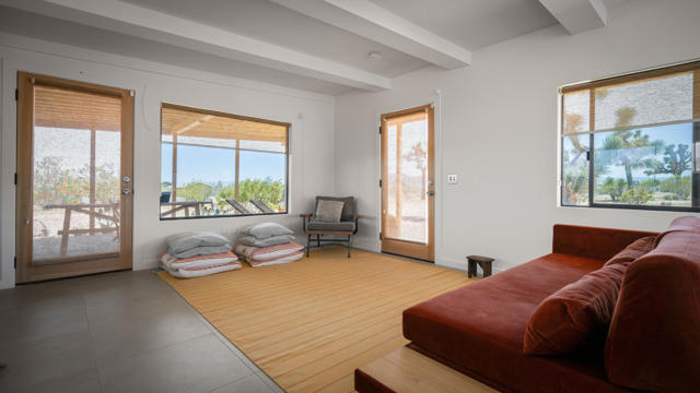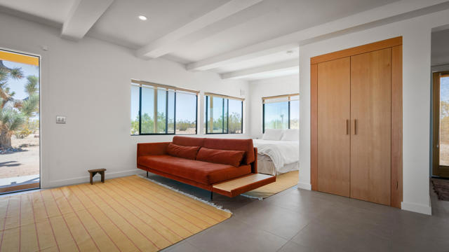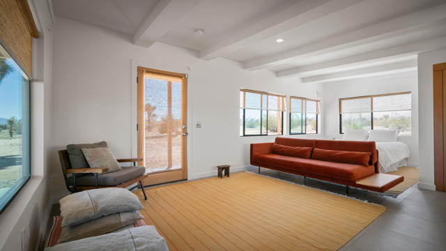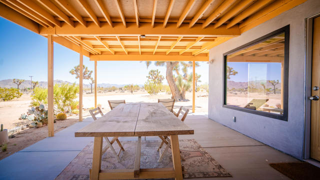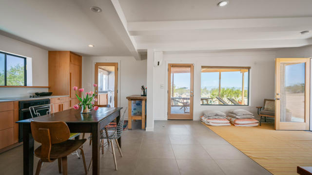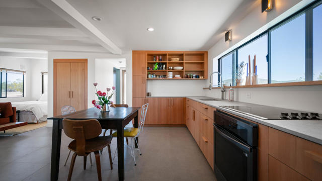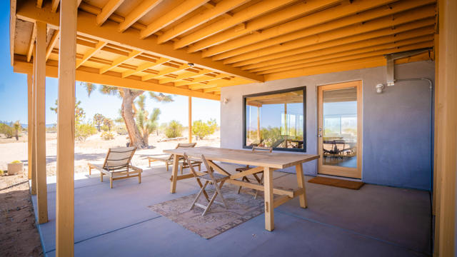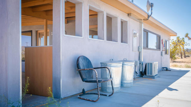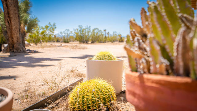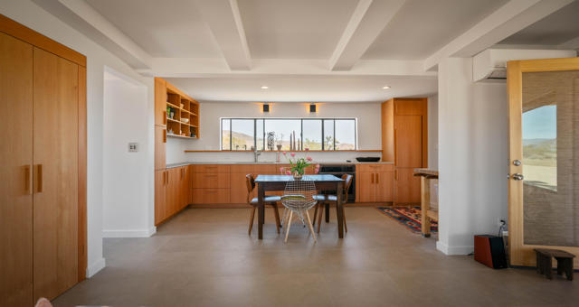 Seller Financing and rate buy downs available! This renovation unfolded meticulously, from demolition to new roof, plumbing, electrical systems, HVAC, bath, kitchen, concrete pour, and windows--all with legal compliance. Materials were handpicked for durability, from custom cabinets to natural wood, porcelain, and quartz stone. Adding allure are discreet private driveways, integrating seamlessly into the landscape and a 150+ year old Joshua Tree. Mornings reveal sunrise vistas while evenings bid adieu with breathtaking sunsets. The sellers infused intention into every facet of design, creating a space where one can lose themselves in gardening or reading against a backdrop of distant snowcapped mountains. Enjoy incredible stargazing in the Mesa. It's a haven of tranquility yet only minutes from the Farmers market, Pappi's concerts, the Noah Purifoy Foundation, and our beloved Joshua Tree state park.