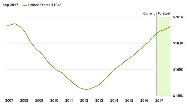 目前美国的房产价值中值在18.94万美元左右,相较於2007年的历史峰值19.6万已经不相上下,相对处於历史高位,约相当於2005年美国房地产的水平。根据预测,2017年这个数字还将上涨2.9%。考虑到1.5-2%的通胀率,这个升值的幅度实在算不上“诱人”。